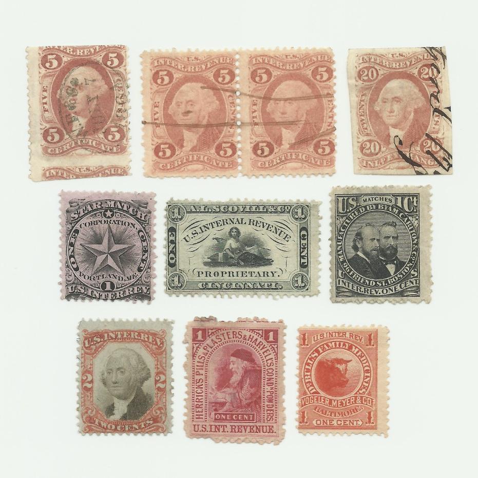 10 عدد تمبر قدیمی مالیاتی امریکا کمیاب و خاص