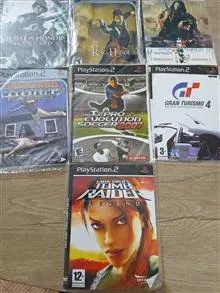هفت عدد cdبازیهای پلی استیشن 2 که داخل نایلون بوده و اصلا استفاده نشده از انواع بازی جنگی و فوتبالی و رزمی هست