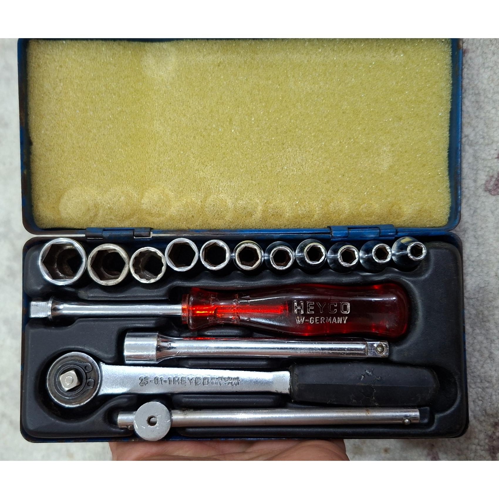 هیکو المان .درایو ¼.جعبه کارکرده تمیز هست انتظار جعبه بکس اکبند نداشته باشید .بکسها سایز 4 تا 13 میلی متر .بکس شماره 10 گم شده و بکس امریکایی جایگزین شده.