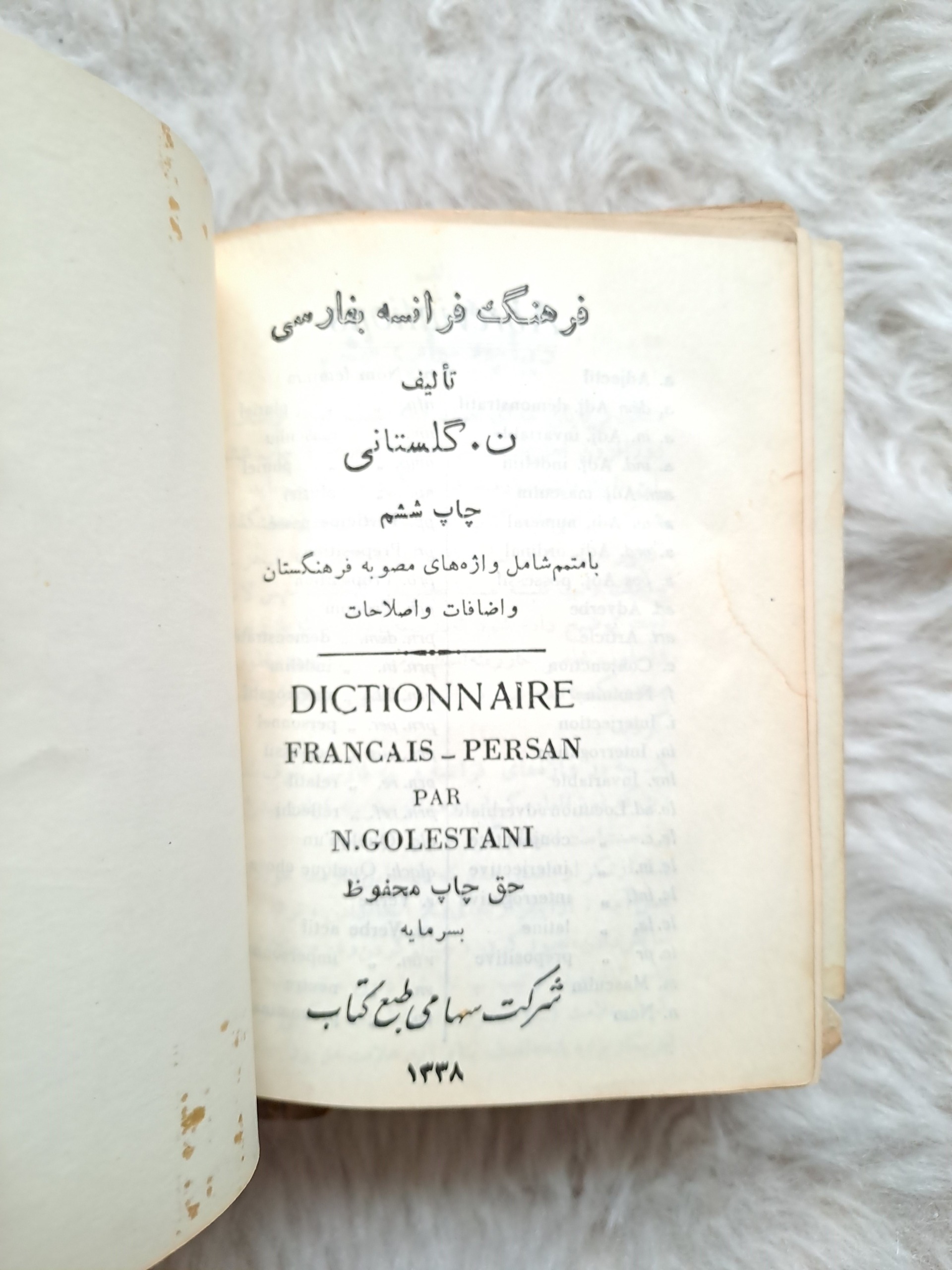 دیکشنری فارسی-فرانسه قدیمی/ چاپ 1338