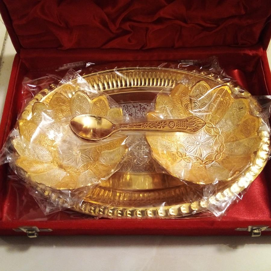 ست دو تیکه سینی و کاسه برنجی هندی عالی (ک 4)S N
