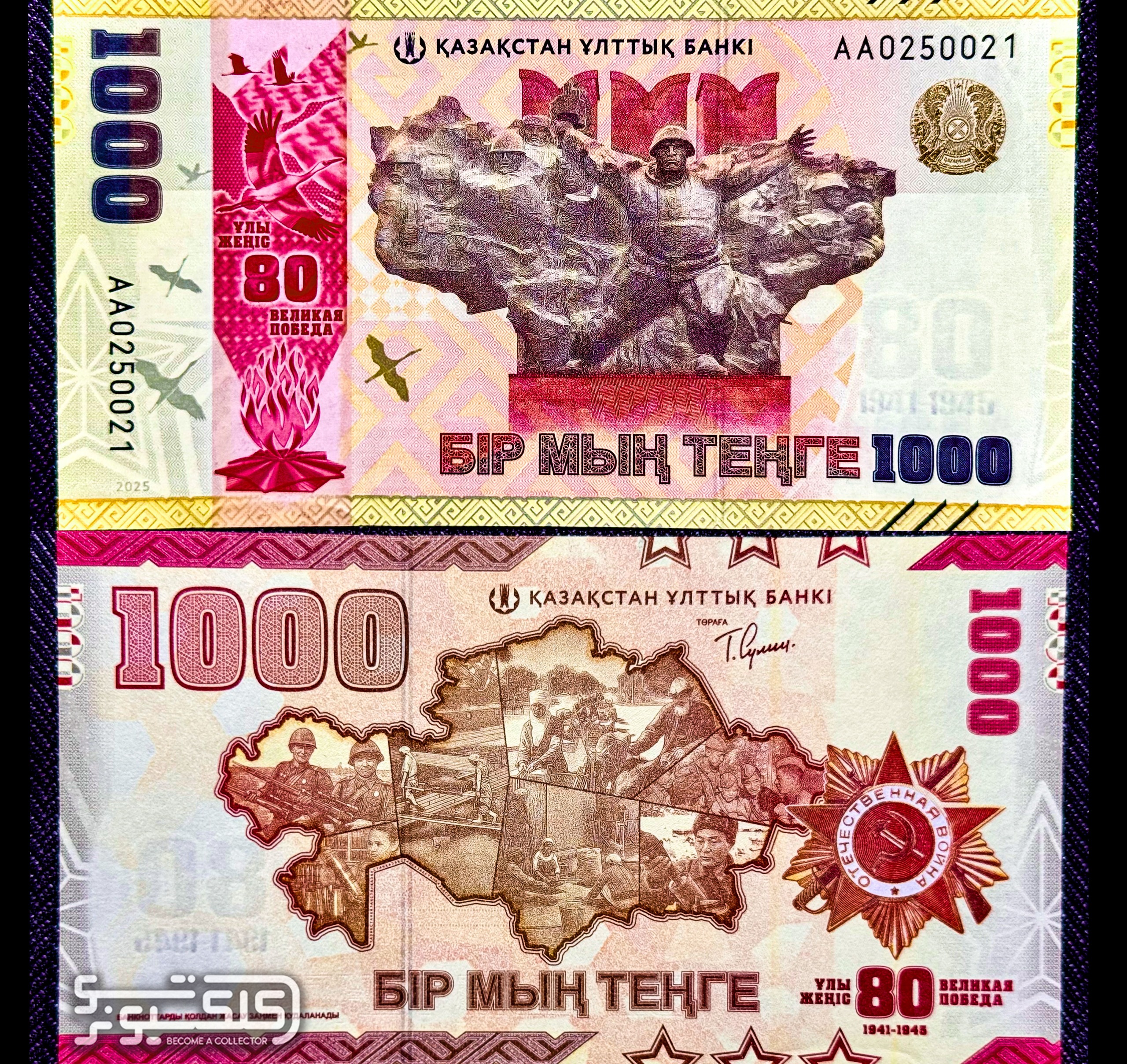 اسکناس 1000 تنگه قزاقستان یادبود ارتش سرخ