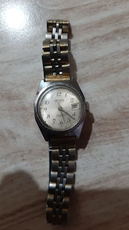 ساعت سیکورای زنانه اتوماتیگ و کوکی سوئیسی موتور طلایی کارکرد ساعت خوبه سالم و دقیق. تاریخش 24 ساعته است و با عقربه ها تنظیم میشه طلق ساعت ترک ریز دارد عوض بشه خیلی شفاف و تمیز صفحه رو نشون میده چون قدیمی هست بند ساعت هم غیر فابریک است و بند اورینت روش گذاشتم. روش خط و خش داره ساعت هم برای استفاده خوبه هم برای کلکسیون خوبه هر سوالی داشتید بپرسید.لطفا از ساعت های دیگر ما هم بازدید کنید مرسی