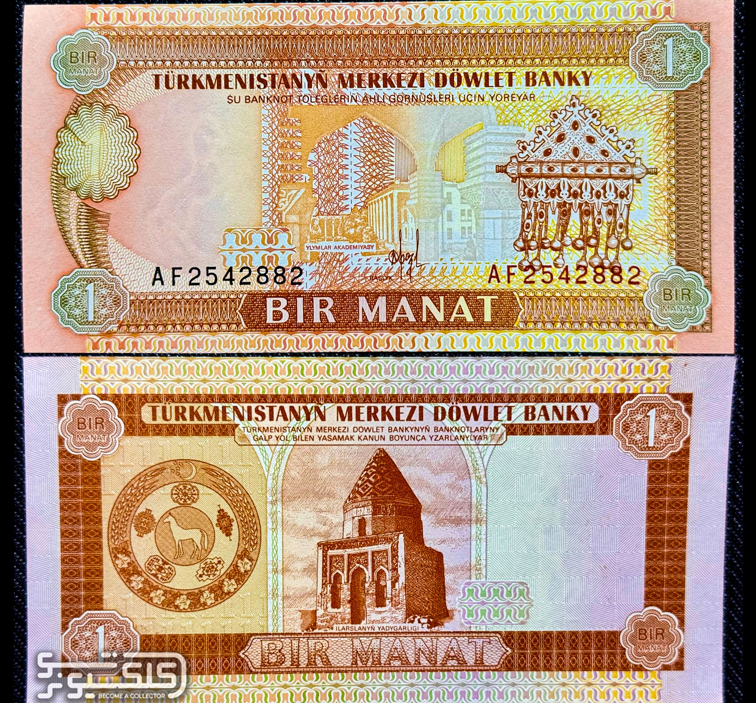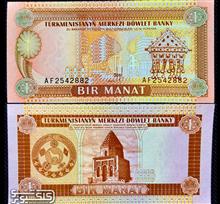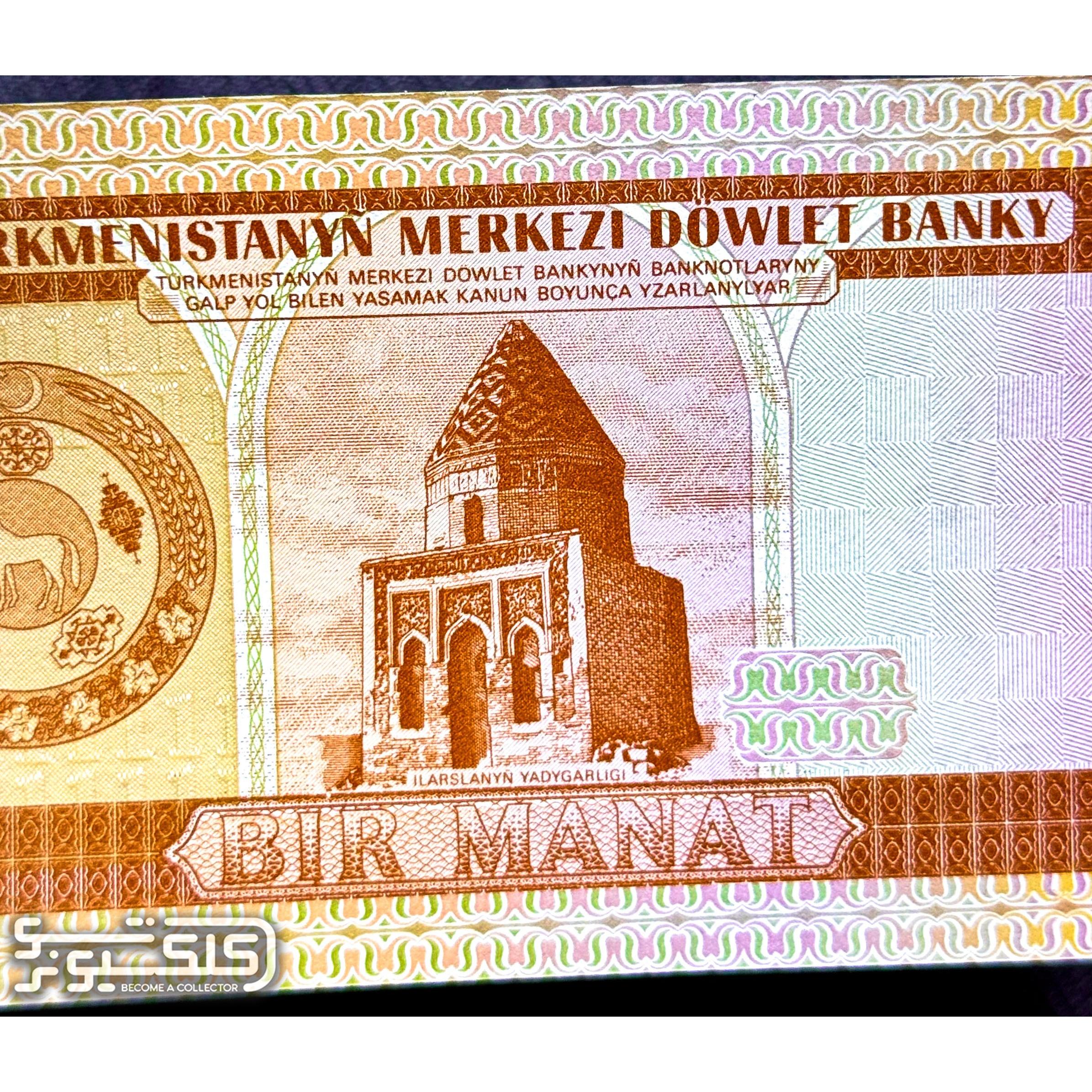 اسکناس 1 منات ترکمنستان مقبره رازی 1993