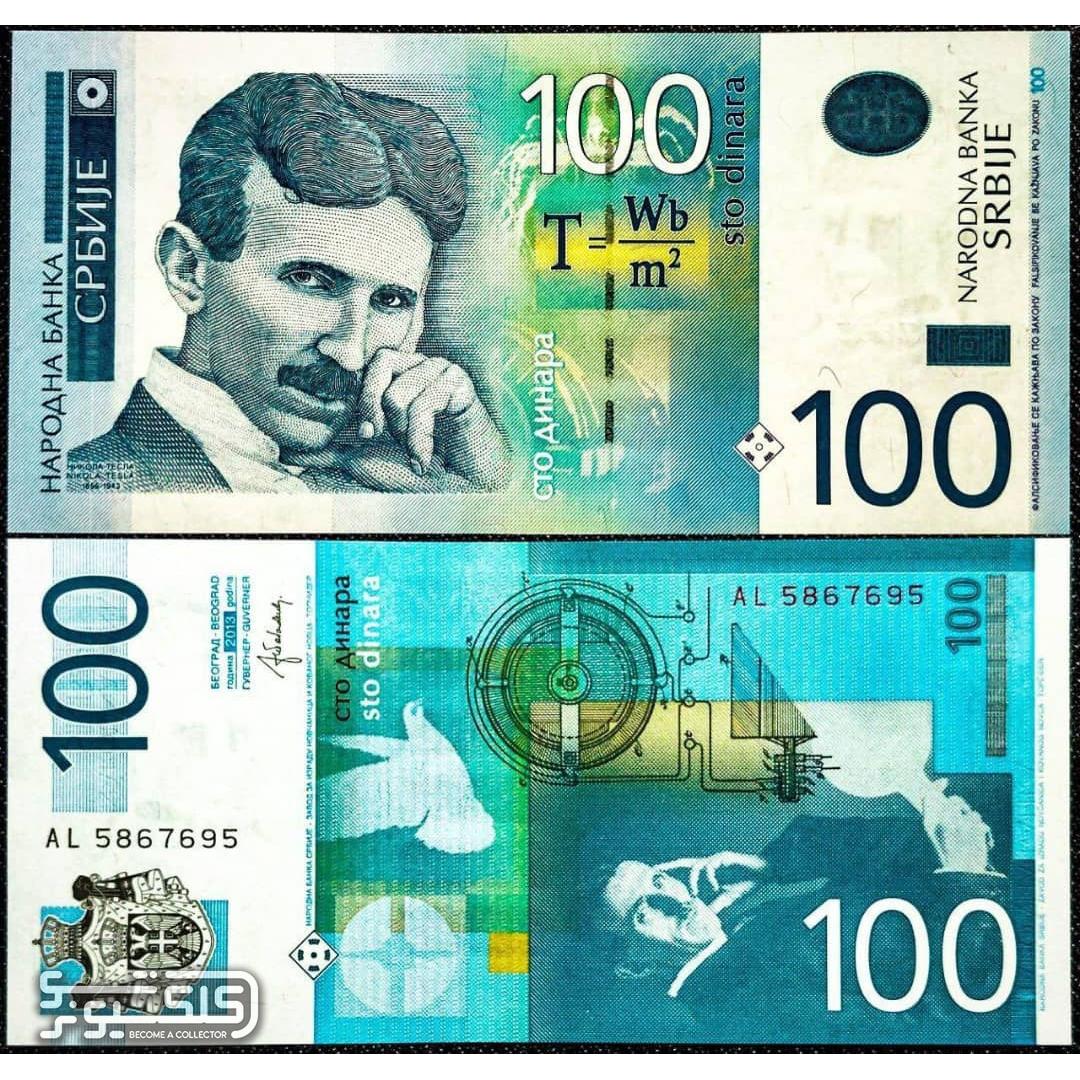 اسکناس 100 دینار صربستان نیکولا تسلا 2013