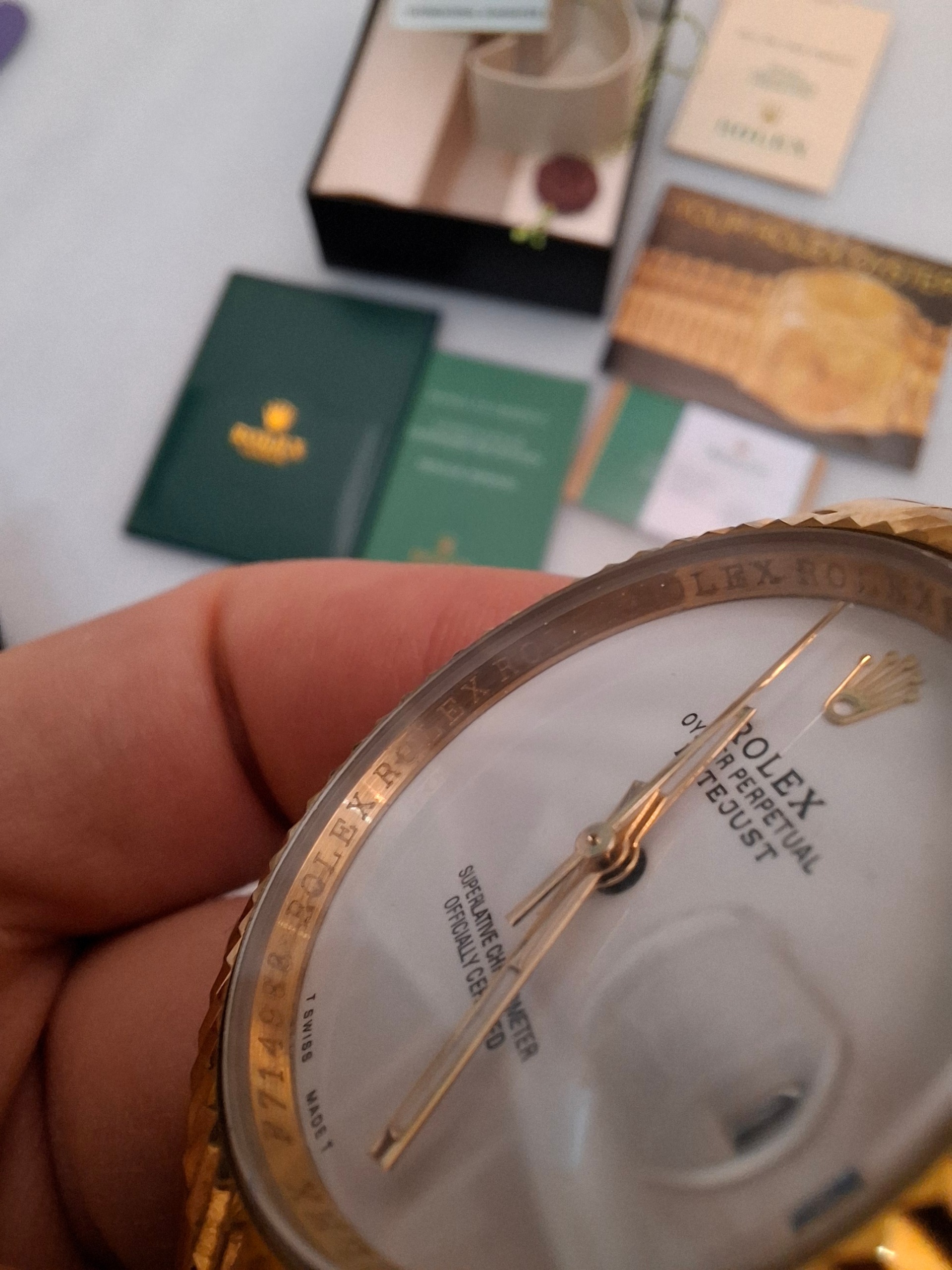 حک لیزری رولکس را زیر شیشه دارد که نشان دهنده کیفیت بسیار بالای High Copy میباشد.(نوشته رولکس همانند نسخه اورجینال دور قسمت داخلی صفحه ساعت حک شده که در عکس آخر مشخص میباشد)