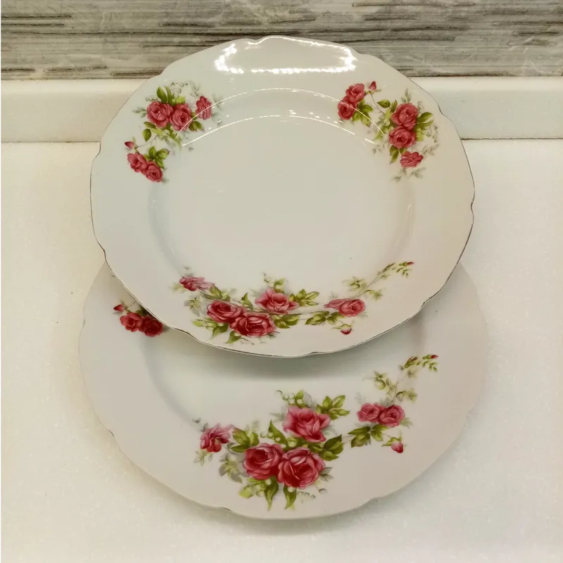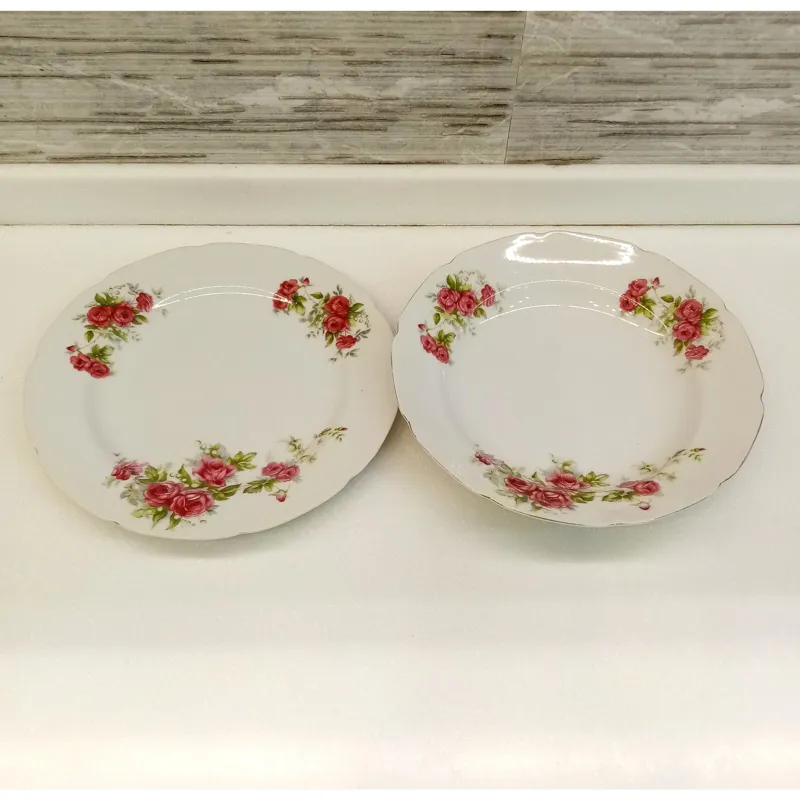 1عدد پلوخوری 23سانت و 1عدد خورش خوری 23سانت هر دو گلسرخی بازرگانی مسعود Kpm زیبا و مجلل. قیمت شامل هردو بشقاب باهم ویکجامیباشد.