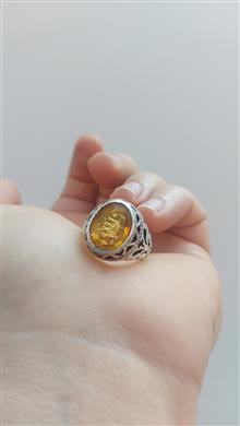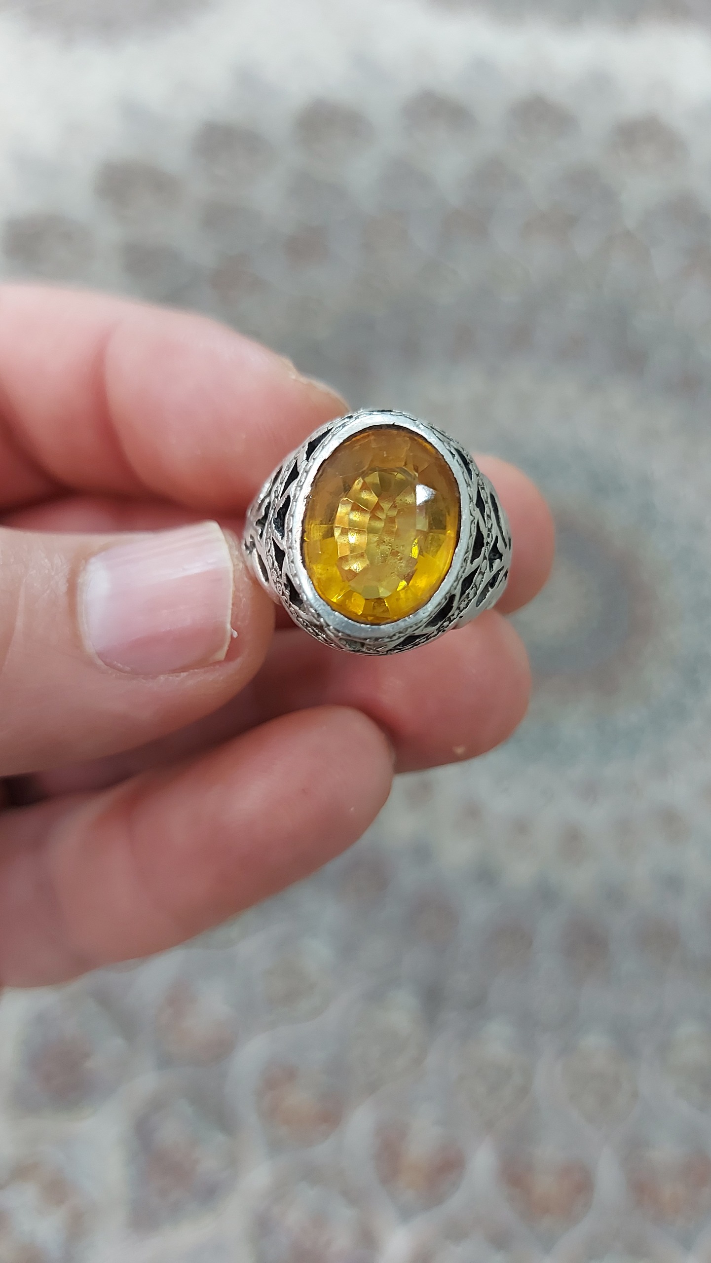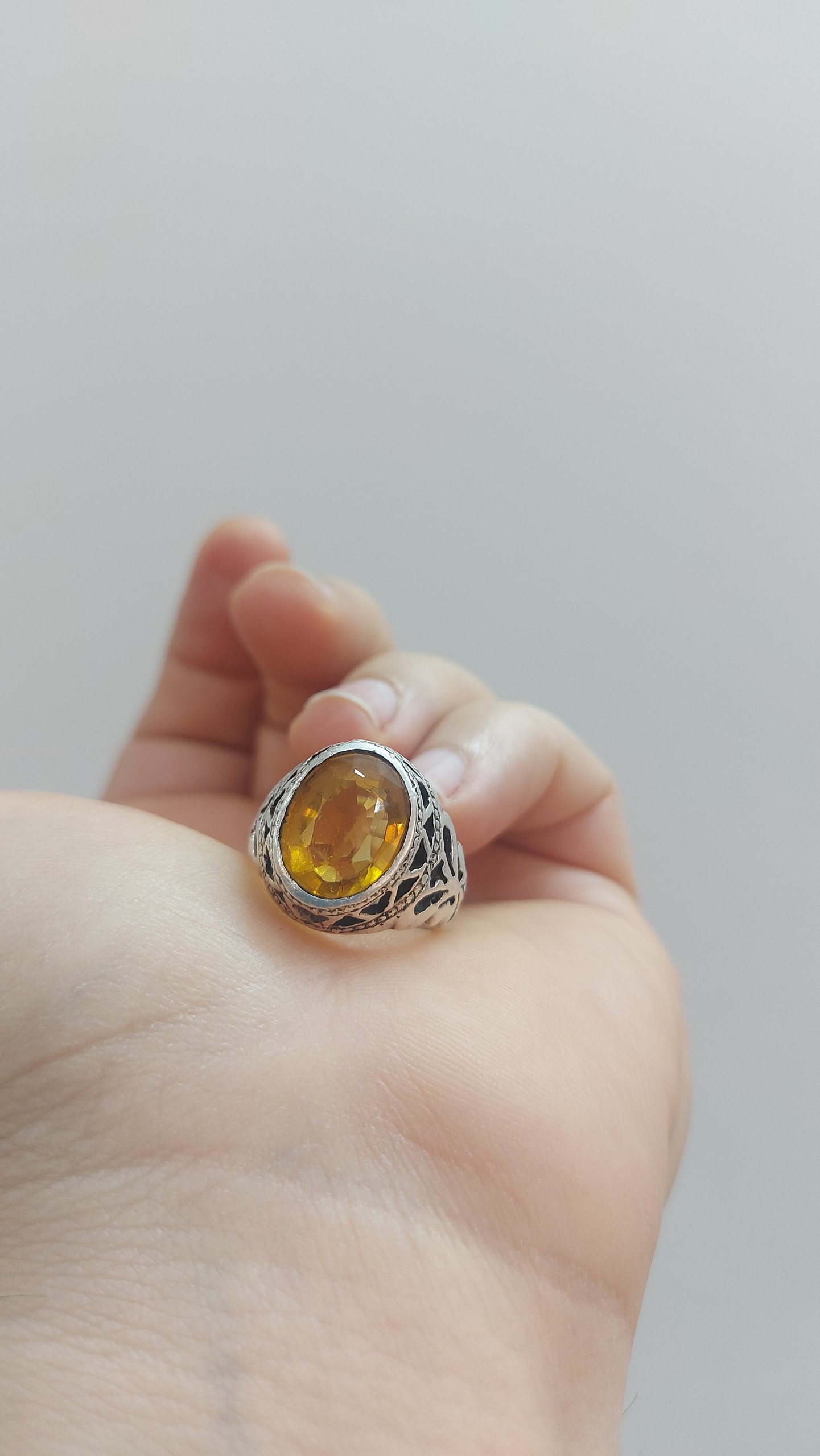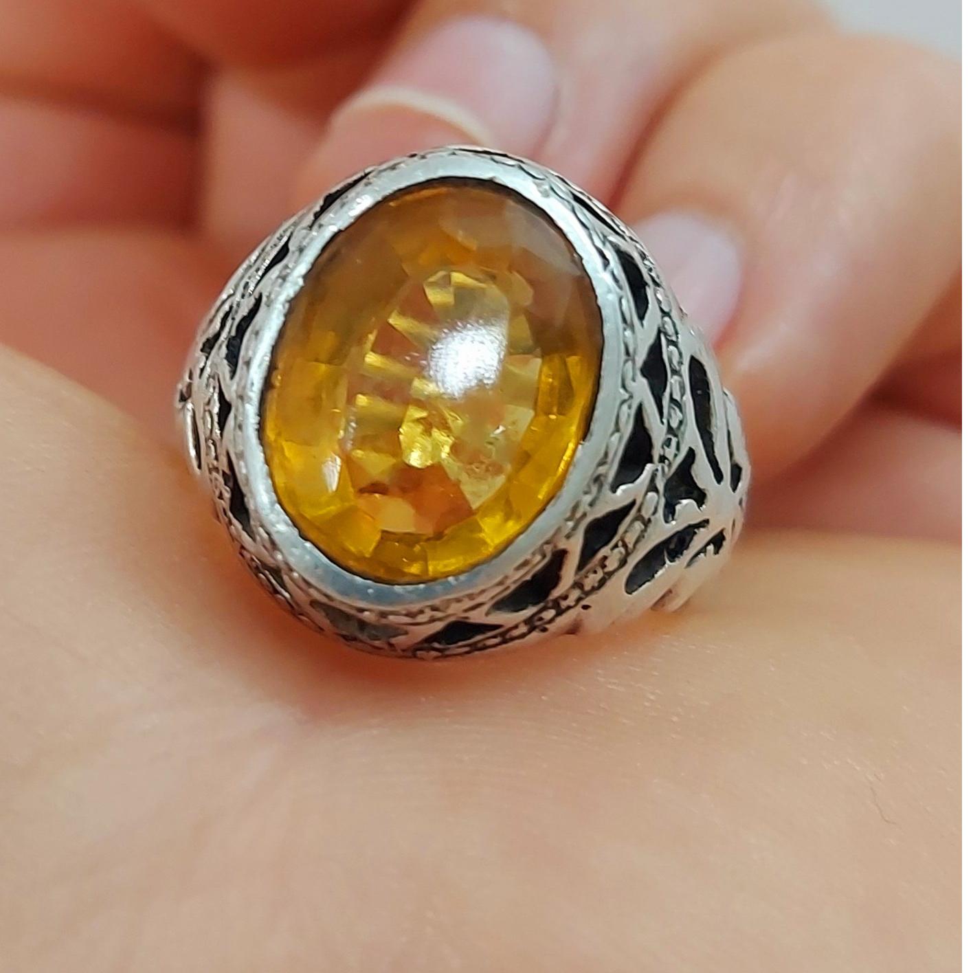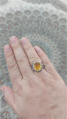 انگشتر نقره رکاب شبکه دستساز عیار 925 با نگین سیترین معدنی طلایی الماس تراش سایز 63_64  وزن 11.66