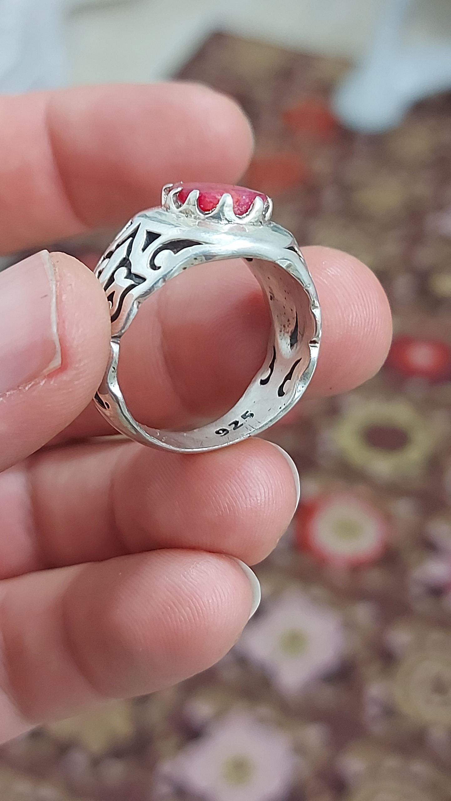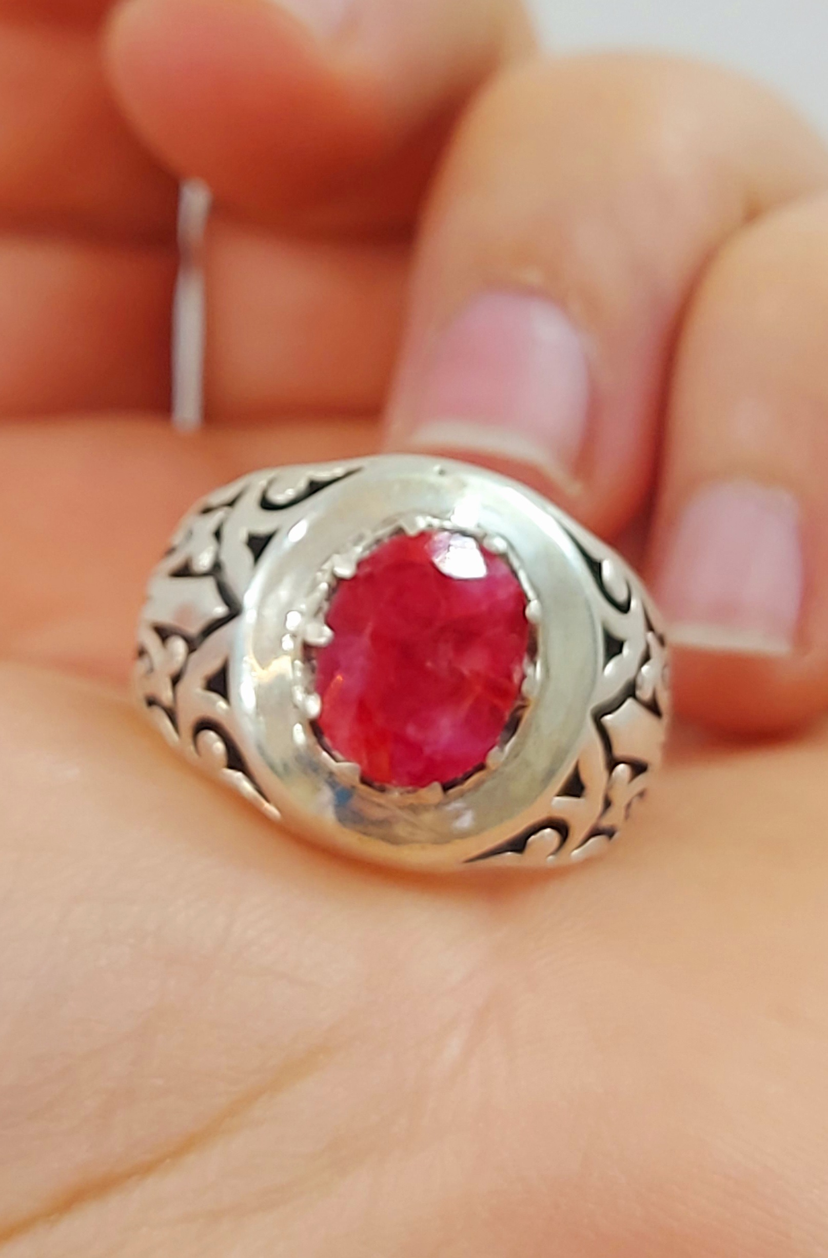 انگشتر نقره یاقوت سرخ اصل رکاب دستساز عیار نقره 925 سایز 64_65 وزن 14.11