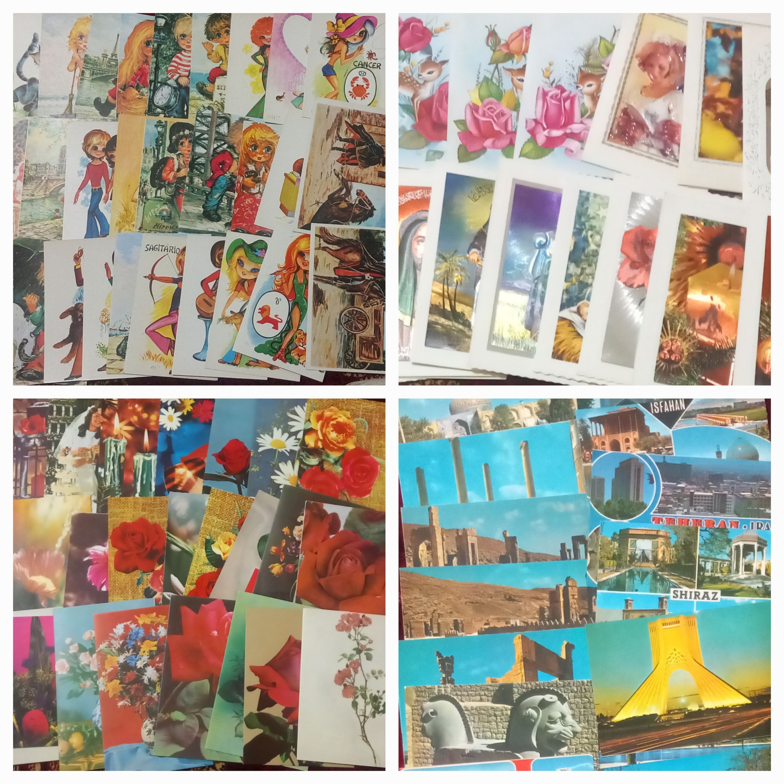 براق ، کارتونی، گل و حیوانات ، مناظر و اماکن .کودک .مینیاتوری و... میباشد