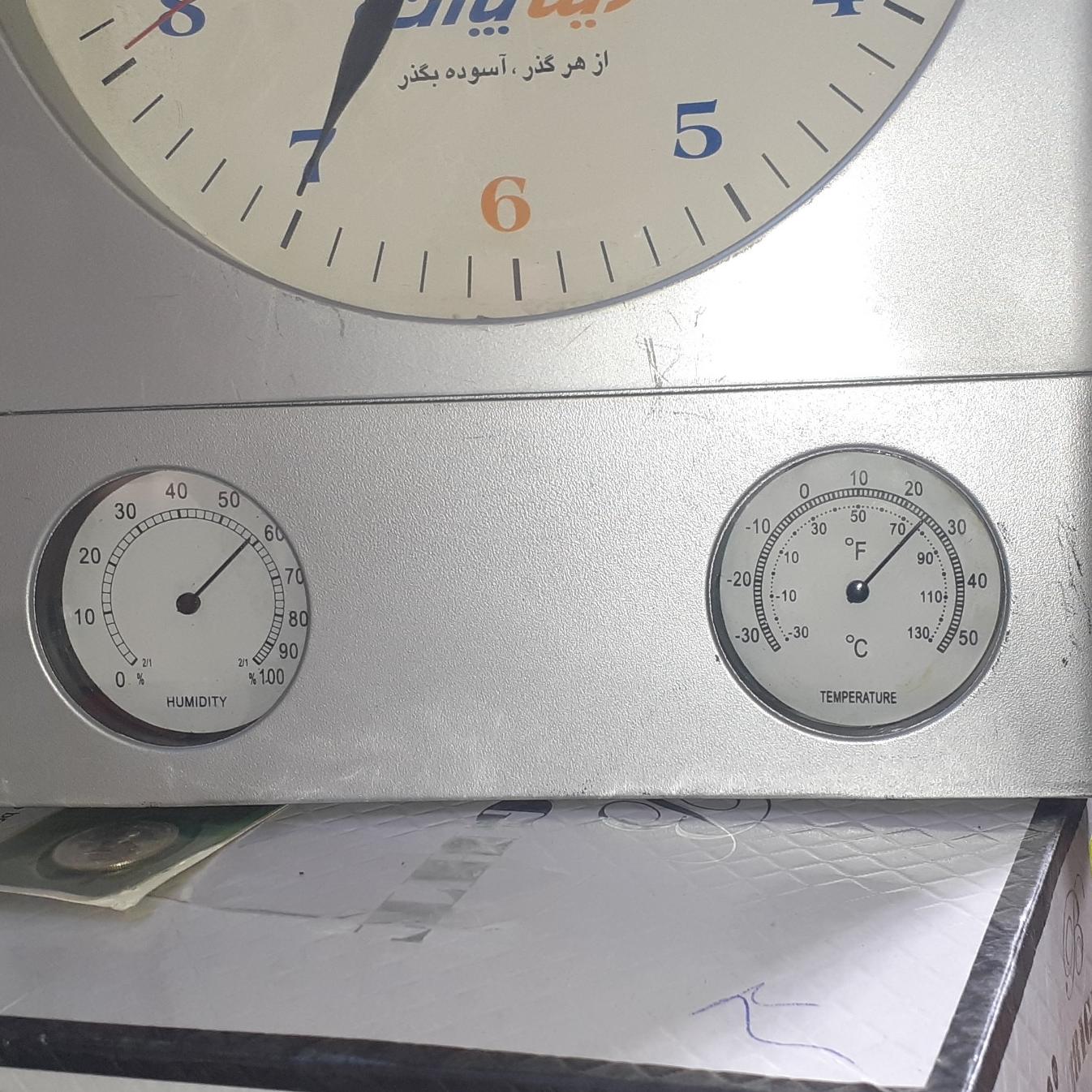 ساعت دیواری تبلیغاتی دینا پارت همراه با دماسنج و شماره ثبت