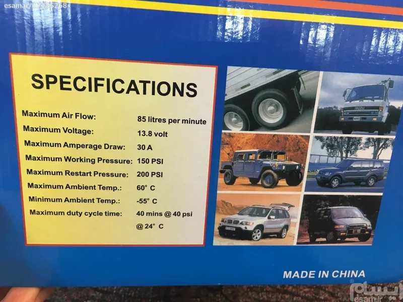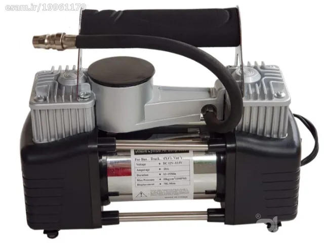 نو است و فقط برای عکس گرفتن باز شده، تمام مشخصات در اینترنت قابل مطالعه است ولی برخی از ویژگی ها : بسیار با کیفیت و قوی-قدرت هوا 85 لیتر در دقیقه دوسیلندر به همراه یک شلنگ اصلی و یک شلنگ بلند فنری سری های مختلف که در عکسها قابل مشاهده است و کیف برزنتی مخصوص بقیه مشخصات روی عکس و نت نوشته صفر هست و فقط برای عکس گرفتن باز شده بسیار با کیفیت تر و قویتر از مدلهای دیگر بازار توی ماشین بسیار به دردون میخوره مخصوصا اگر وسط راه خدای نکرده پنچر یا لاستیک کم باد بشه.