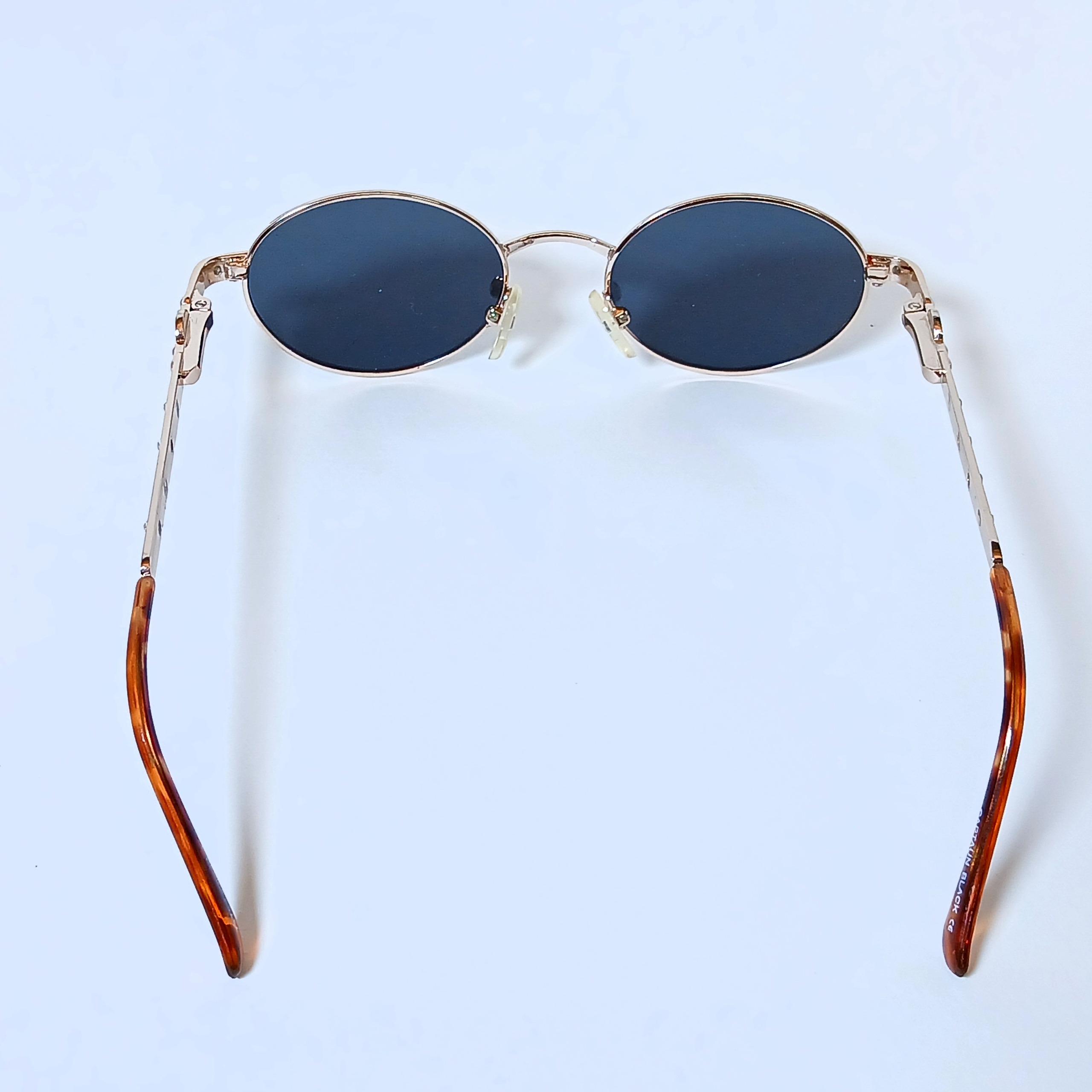 عینک فلزی captain black بیضی ( oval) شکل و رنگ طلائی با دسته های فنری متعلق به حدود 25 سال قبل کاملا سالم بدون کوچکترین ایراد، نو هست اصلا استفاده نشده ، صرفا بدلیل قدمت و امکان وجود خش و نصب لنز آفتابی روی این عینک به عنوان در حد نو قرار داده شده . البته برای استفاده لنز طبی و بلوکات و روزانه هم کاملا مناسب است. لنز آفتابی نصب شدهUV400 و پلاریزه میباشد.اندازه های مختلف عینک به شرح زیر است: