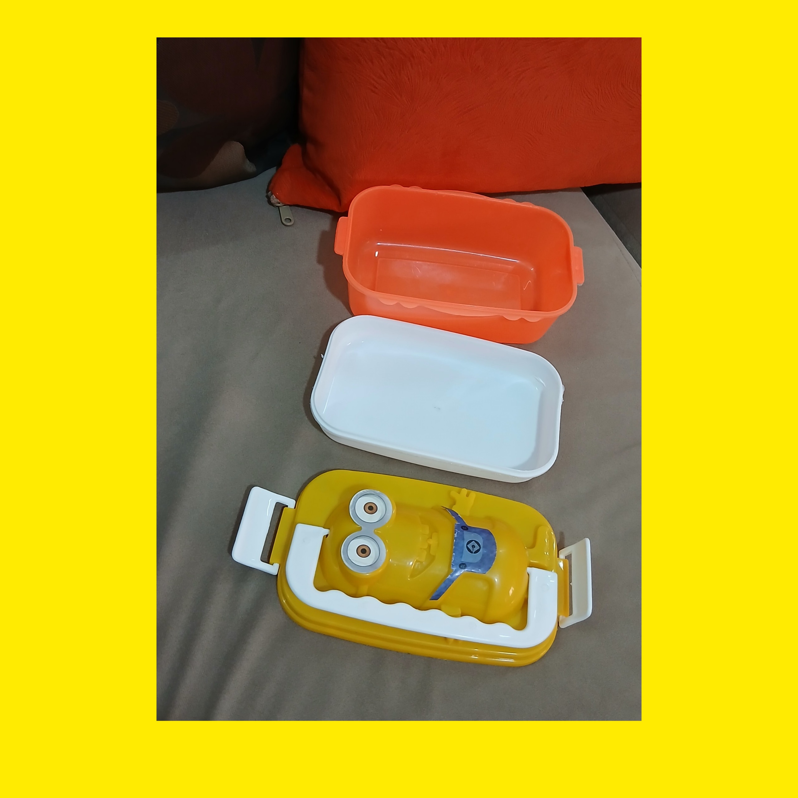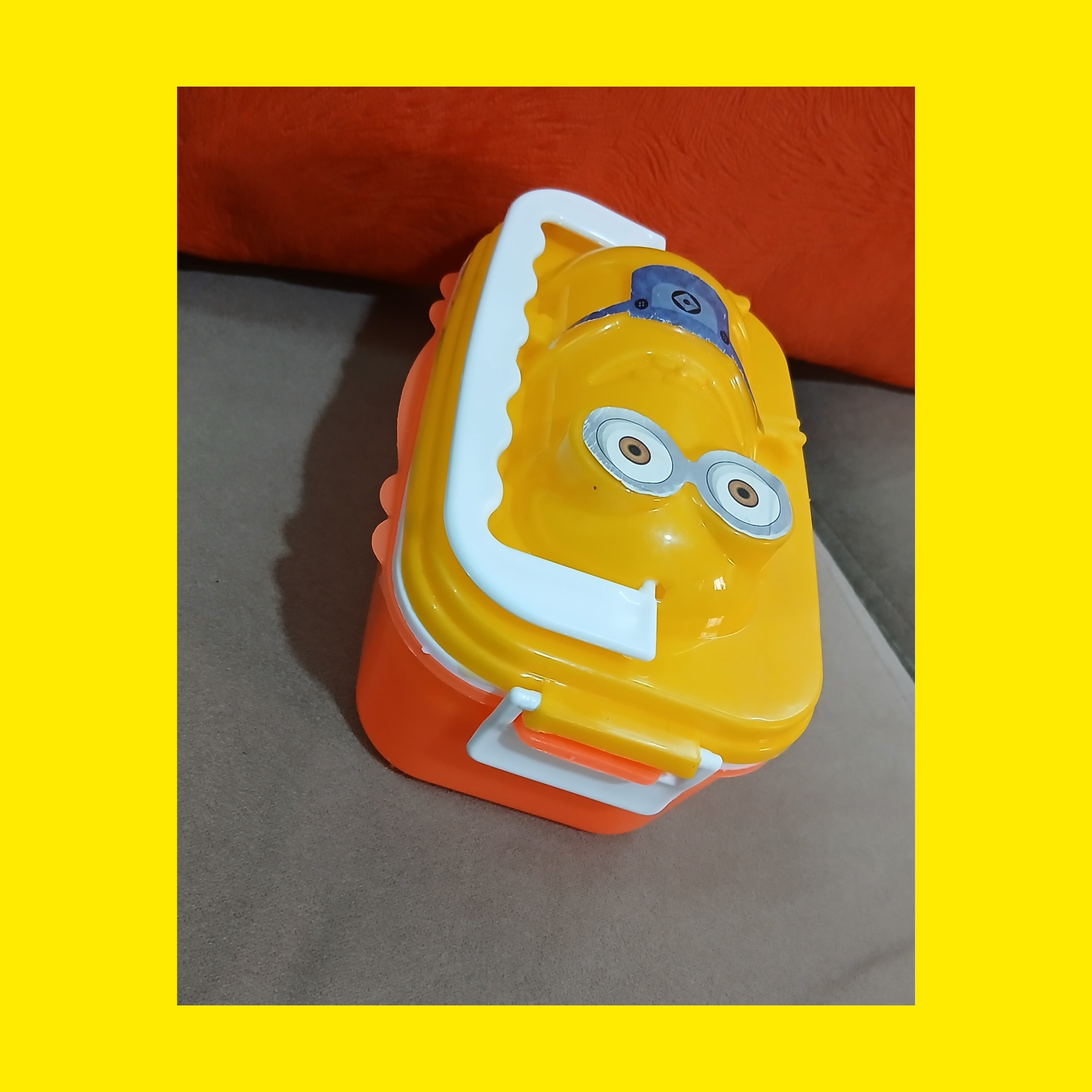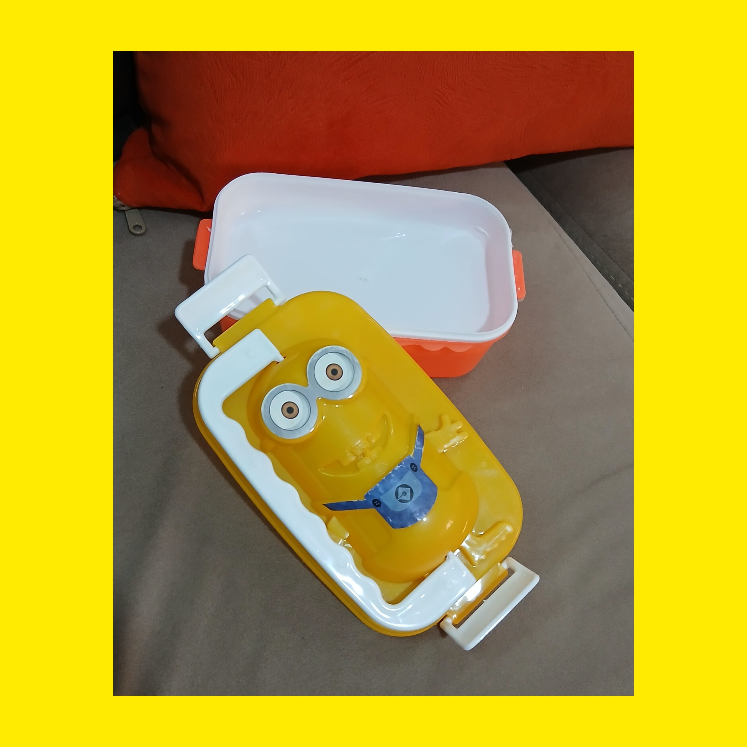 ظرف نگهدارنده غذا پلاستیکی کودک زرد ونارنجی شاد مینیون فانتزی تمیز و شیک کاربردی مناسب کودک وفرزندان شما
