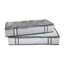کاور پتو و لباس زیر تختی بسته 1 عددی ، تمام آن چیزی است که برای نظم بخشیدن و همچنین ایجاد امکان استفاده از فضای زیر تخت نیاز دارید . این محصول از جنس پارچه کاوری (اسپان باند) تولید شده که شامل یک محفظه همراه با درپ زیپ دار است که از بالا باز و بسته می شود . در قسمت جلوی کاور دو دستگیره پارچه ای تعبیه شده که امکان حرکت کاور در زیر تخت به سمت جلو و عقب کشیدن را برای کاربر خود به سادگی فراهم می کند . بنابراین دشواری بیرون آوردن و مجدداً داخل بردن کاور با توجه به فضای محدود زیر تخت را نخواهید داشت . قسمت جلوی درب کاور پتو و ملحفه زیر تختی ، دارای سطح طلقی می باشد که امکان مشاهده محتویات درون کاور را به وجود آورده است . بنابراین دیگر نیازی به باز کردن درب محفظه برای اطلاع از محتویات درون آن وجود ندارد . پتو ، ملحفه ، لباس و یا هر وسیله دیگری متناسب با ابعاد محفظه را می توانید درون کاور قرار داده و آن را زیر تخت ، داخل کمد و ... جای دهید .