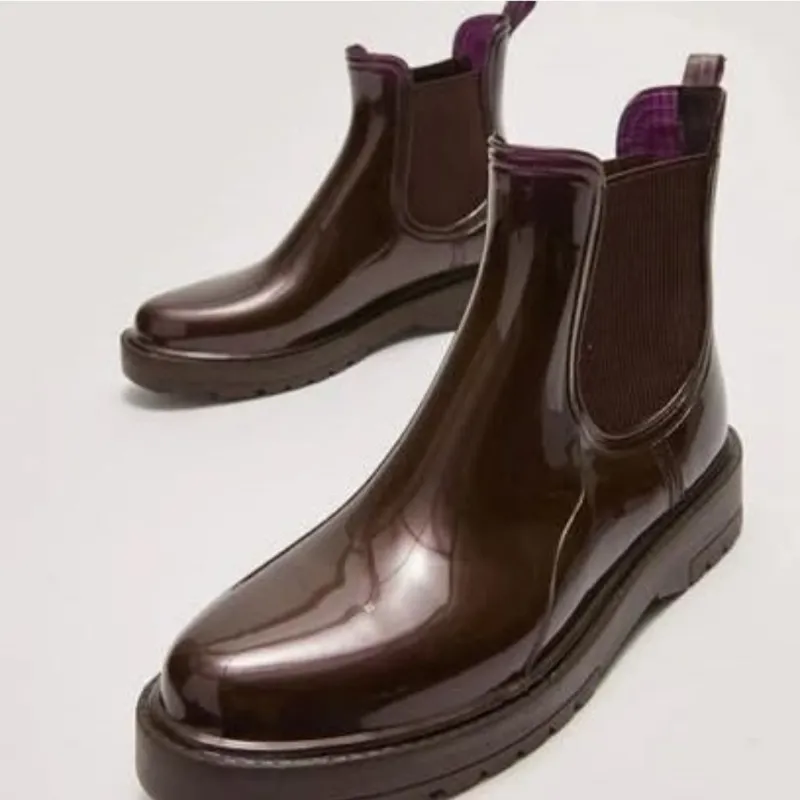بوت زنانه شیک ، مخصوص برف و باران ، جنس از پلاستیک بدون بند ، جهت سهولت پوشیدن و درآوردن کفش از بغل کشی میباشد ، رنگ کفش قهوهای سوخته براق میباشد ، اصالت کالا از سایت وایکیکی قابل استعلام هست