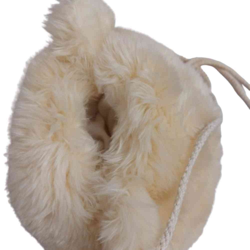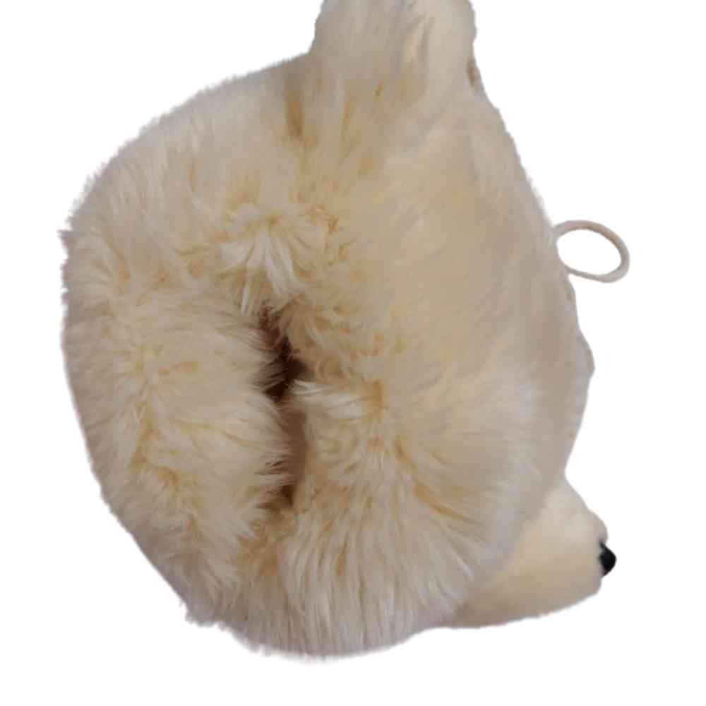 کله عروسک خرس سفید پشمالو تدی مدل ماف دست گرم کن Muff (handwarmer) دارای بند گردن آویز یا کیف رودوشی عروسکی