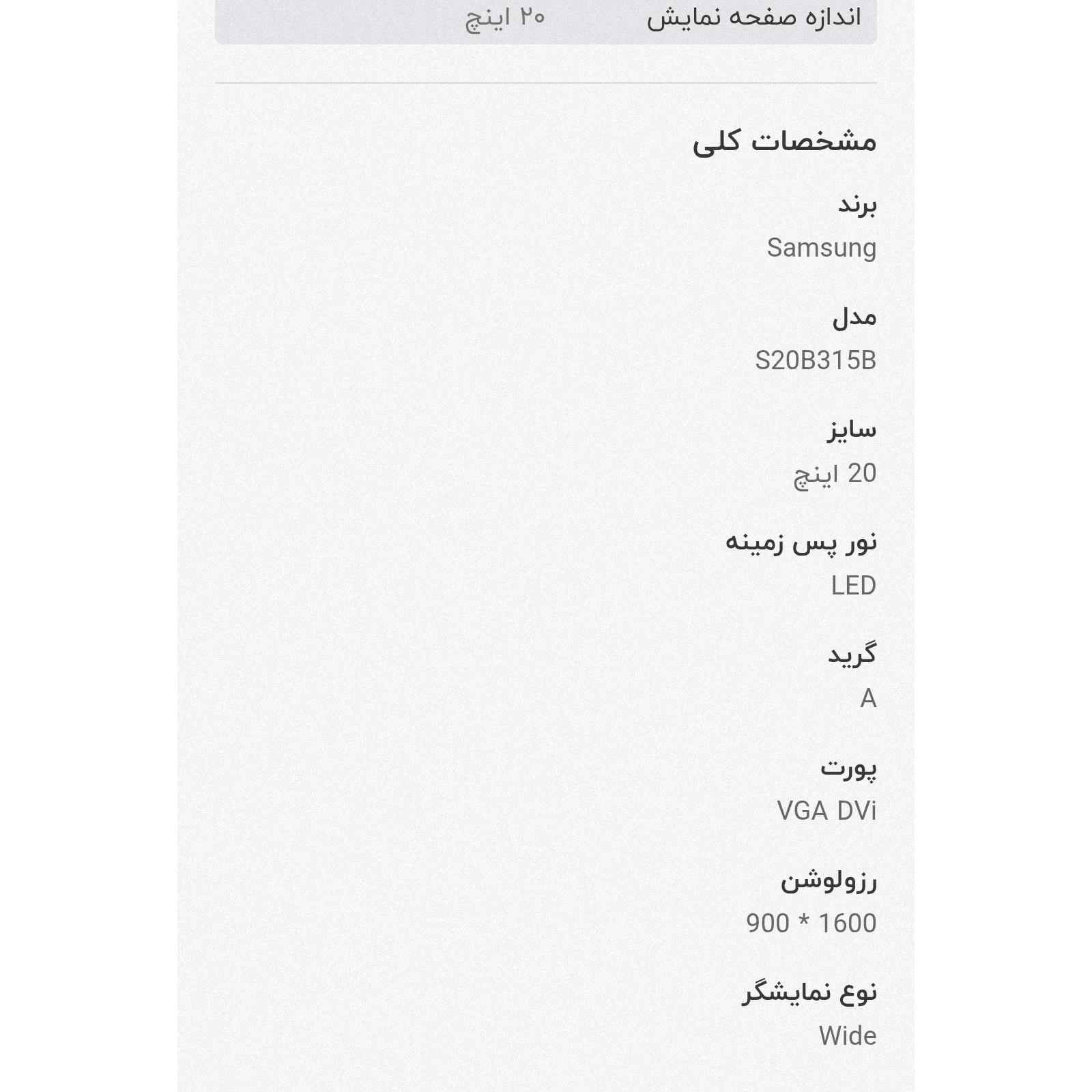 اندازه صفحه نمایش(اینچ)20 اینچ