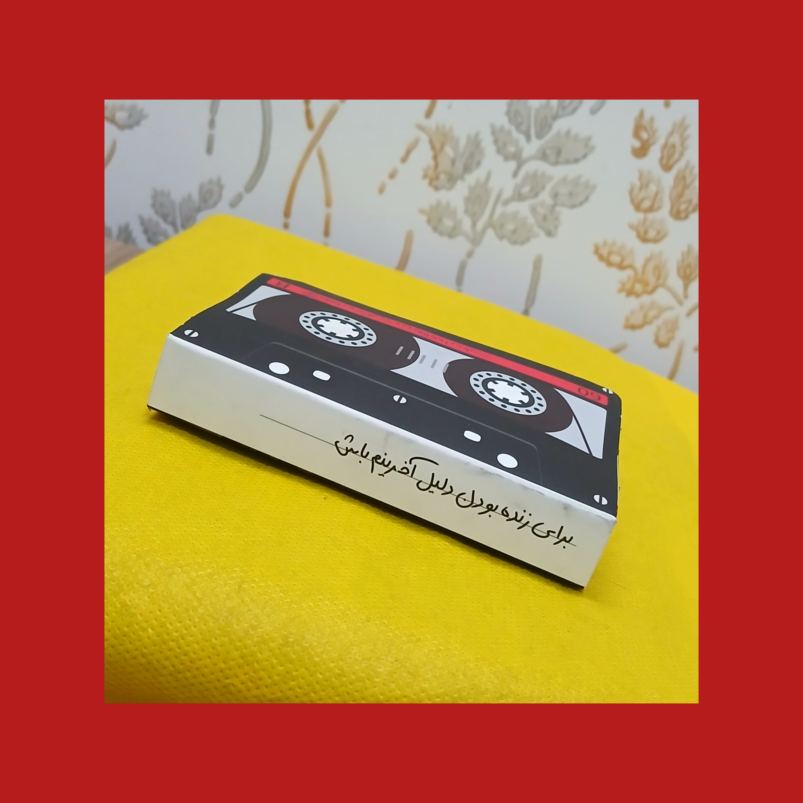 جعبه نوارکاست هدیه سوپرایزی بامزه یادگاری عشق (بارکد دار) یه آهنگ دارد مناسب هدیه تولد ولنتاین و مناسبتی با متن نوشته های زیبا،جنس مقوایی