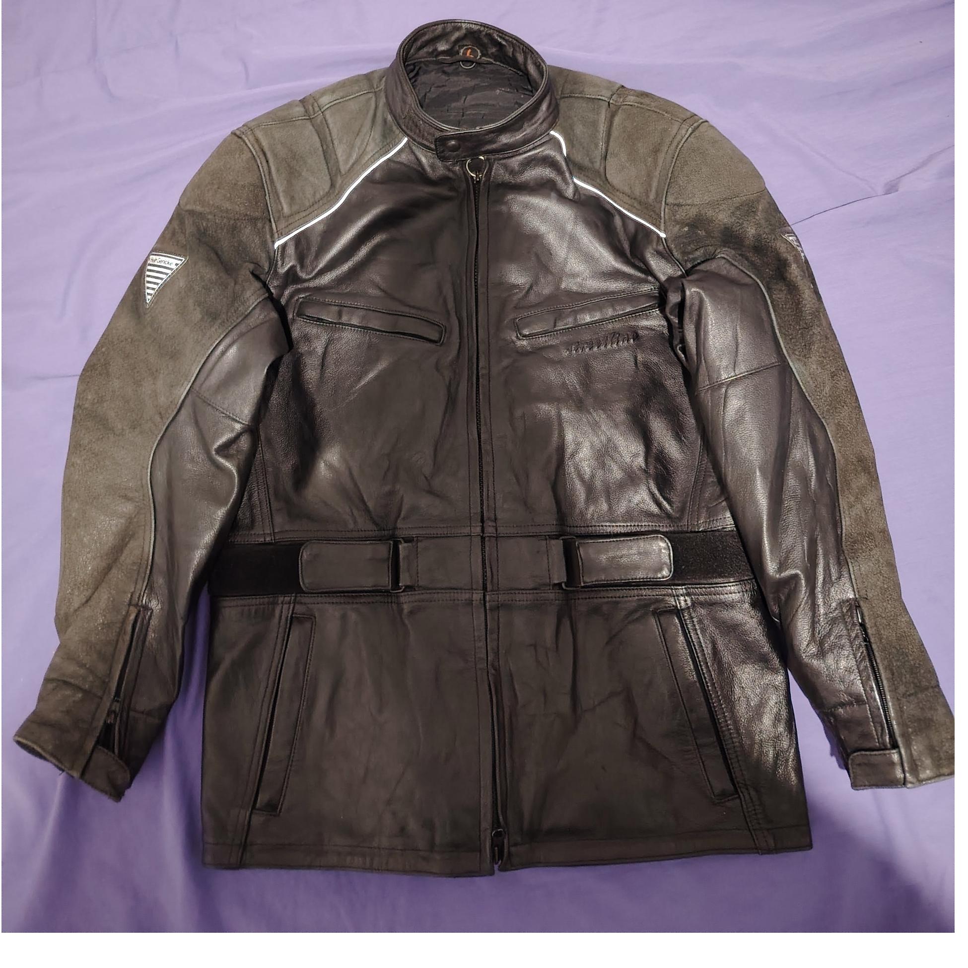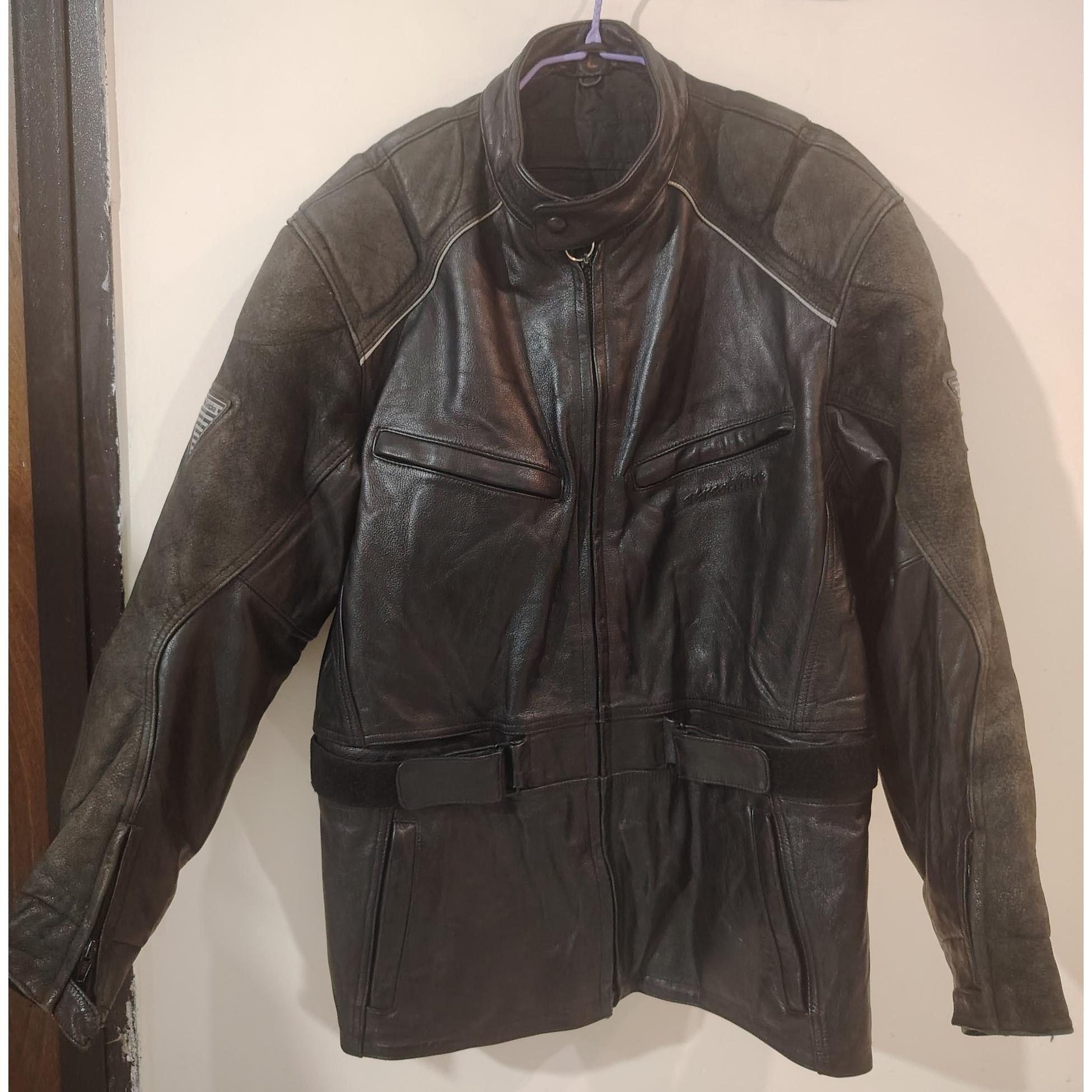 کاپشن چرم بسیار با کیفیت و شیک مناسب برای قد 182تا 190 وزن تا 100کیلو، سر شانه و ارنج ضربه گیر دارد از داخل استر کاپشن فوم ضربه گیر دارد یه ماپشن با کیفیته