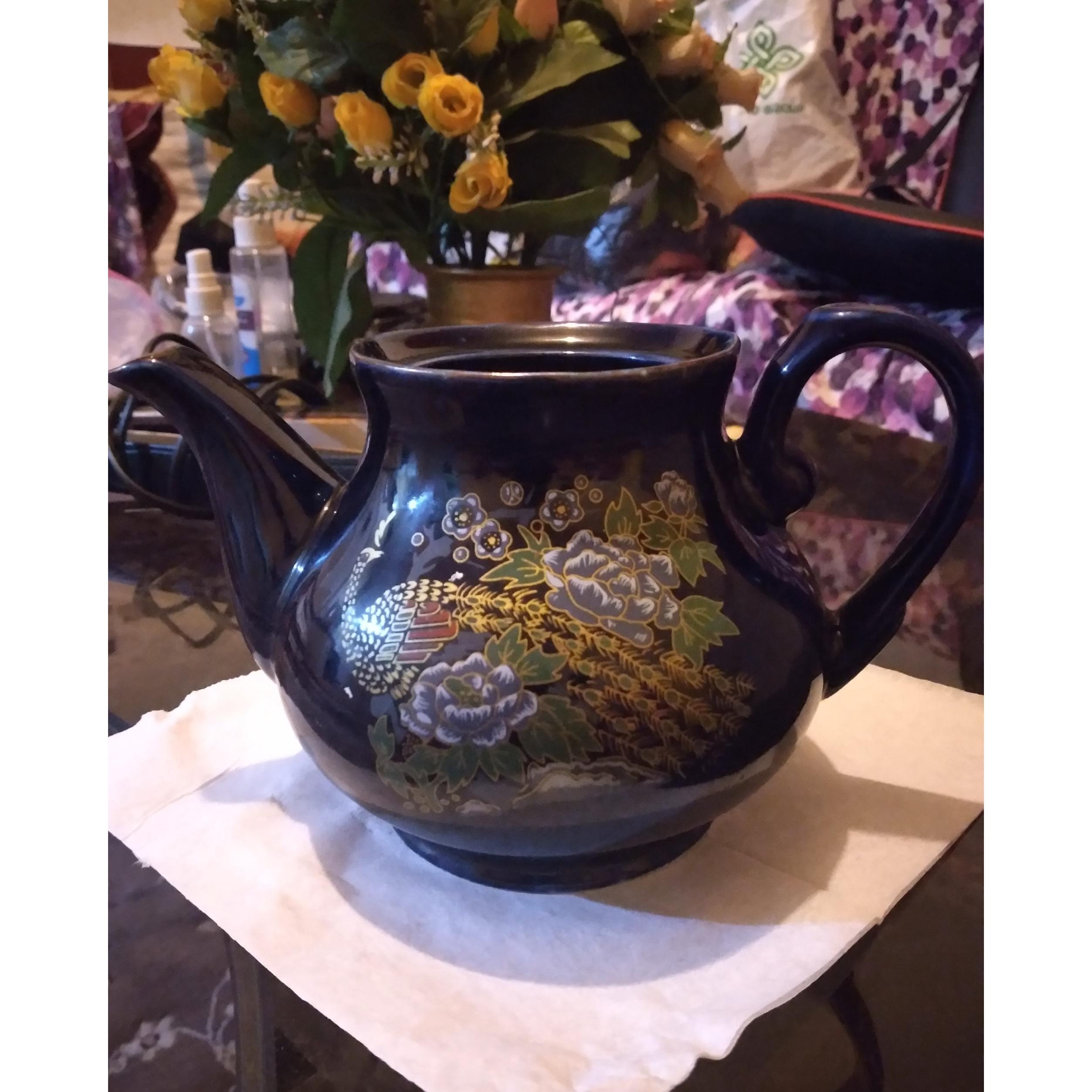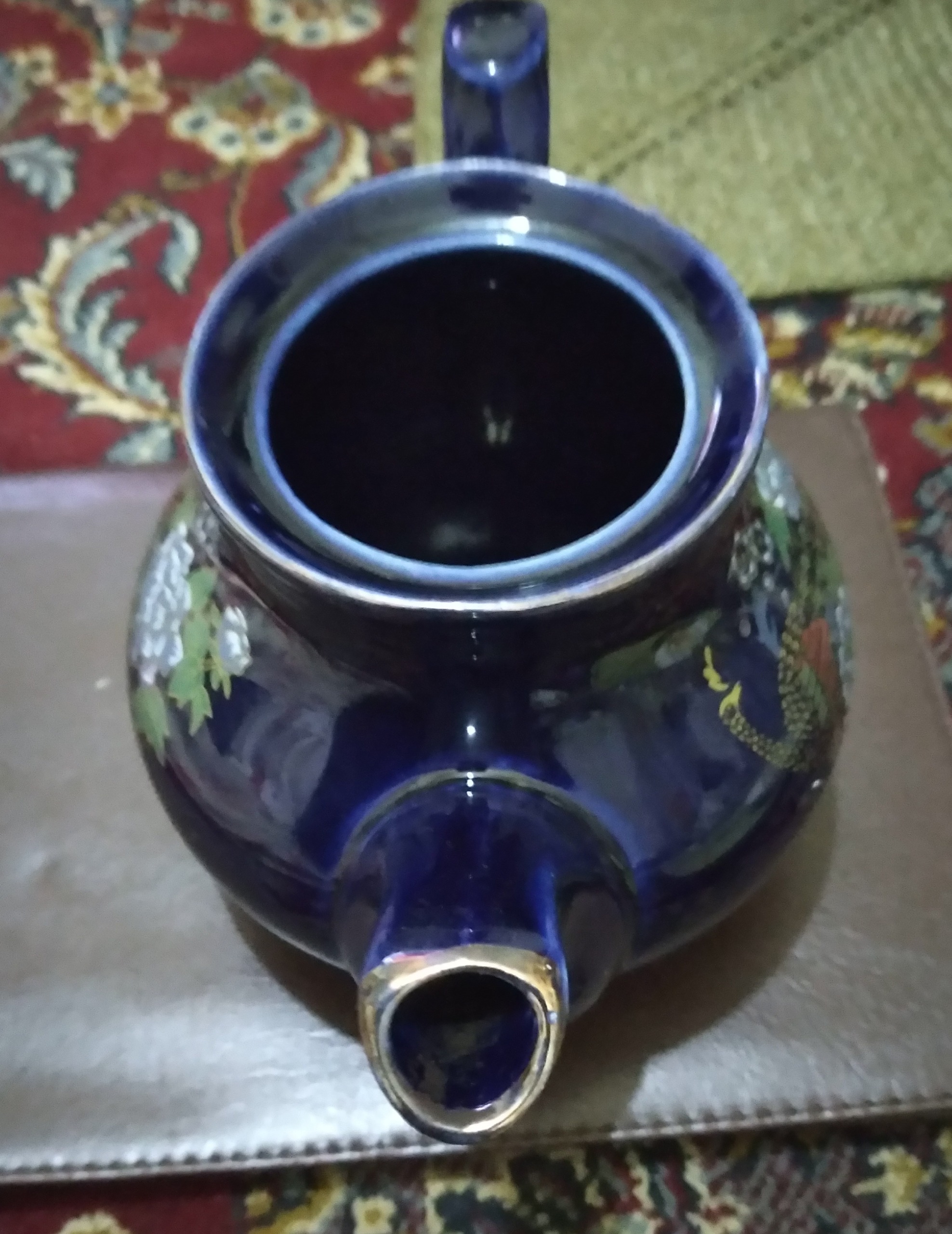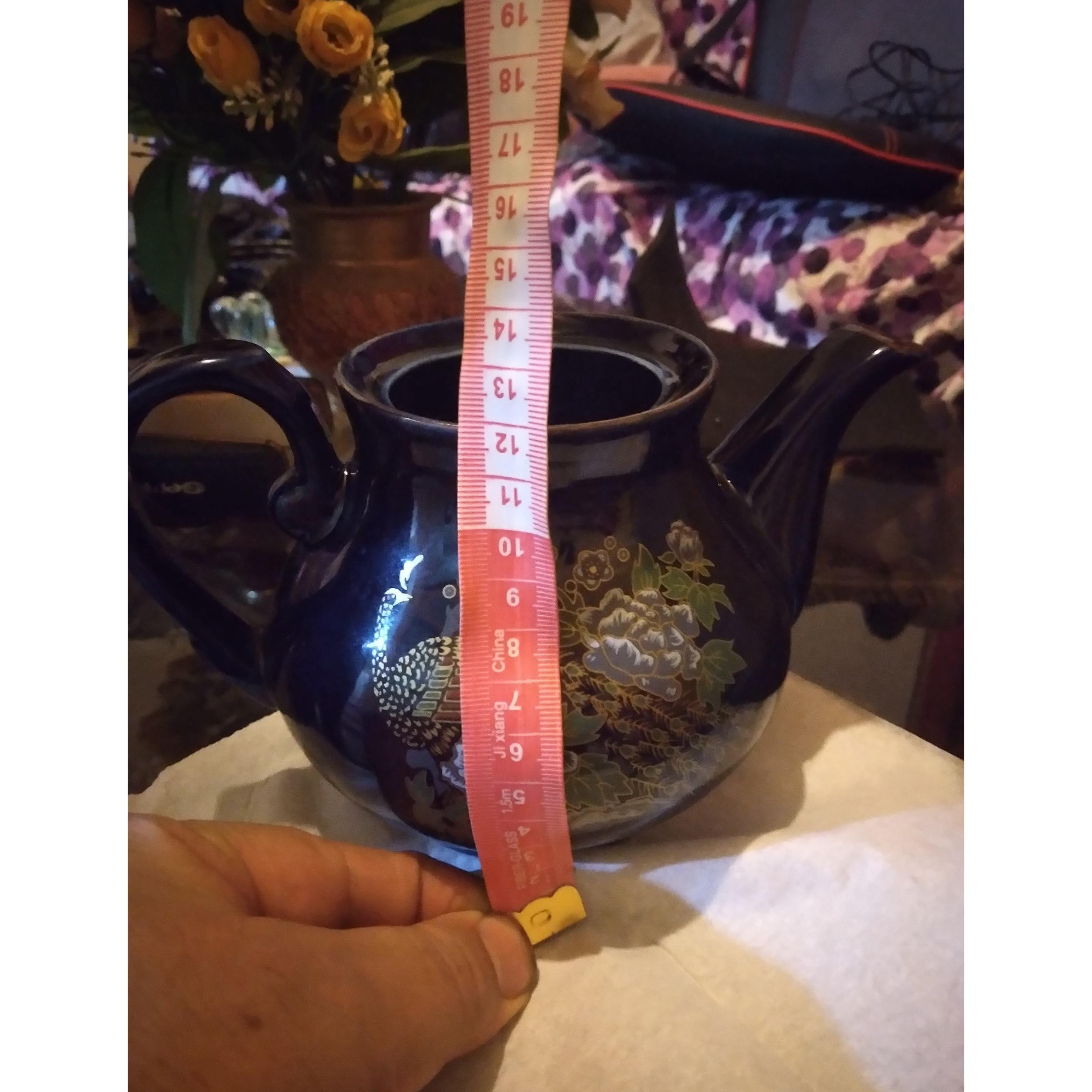 قوری خط آبی بی نظیر با طرح طاووس ته لانه مورچه ای