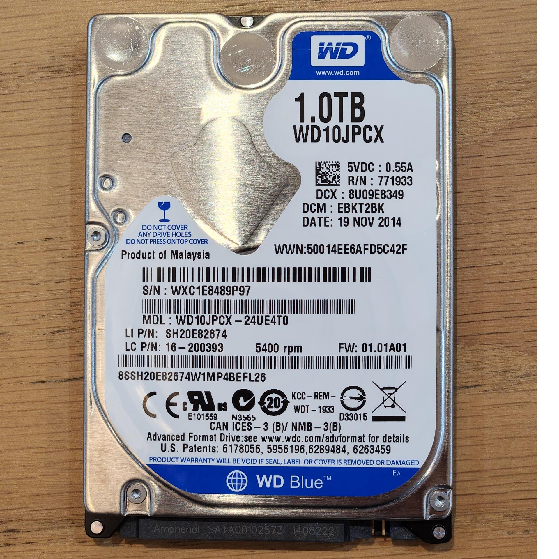 1 عدد هارد وسترن آبی 1 ترابایت در حد نو سلامت 100 کارکرد بسیار کم از روی دستگاه باز شده