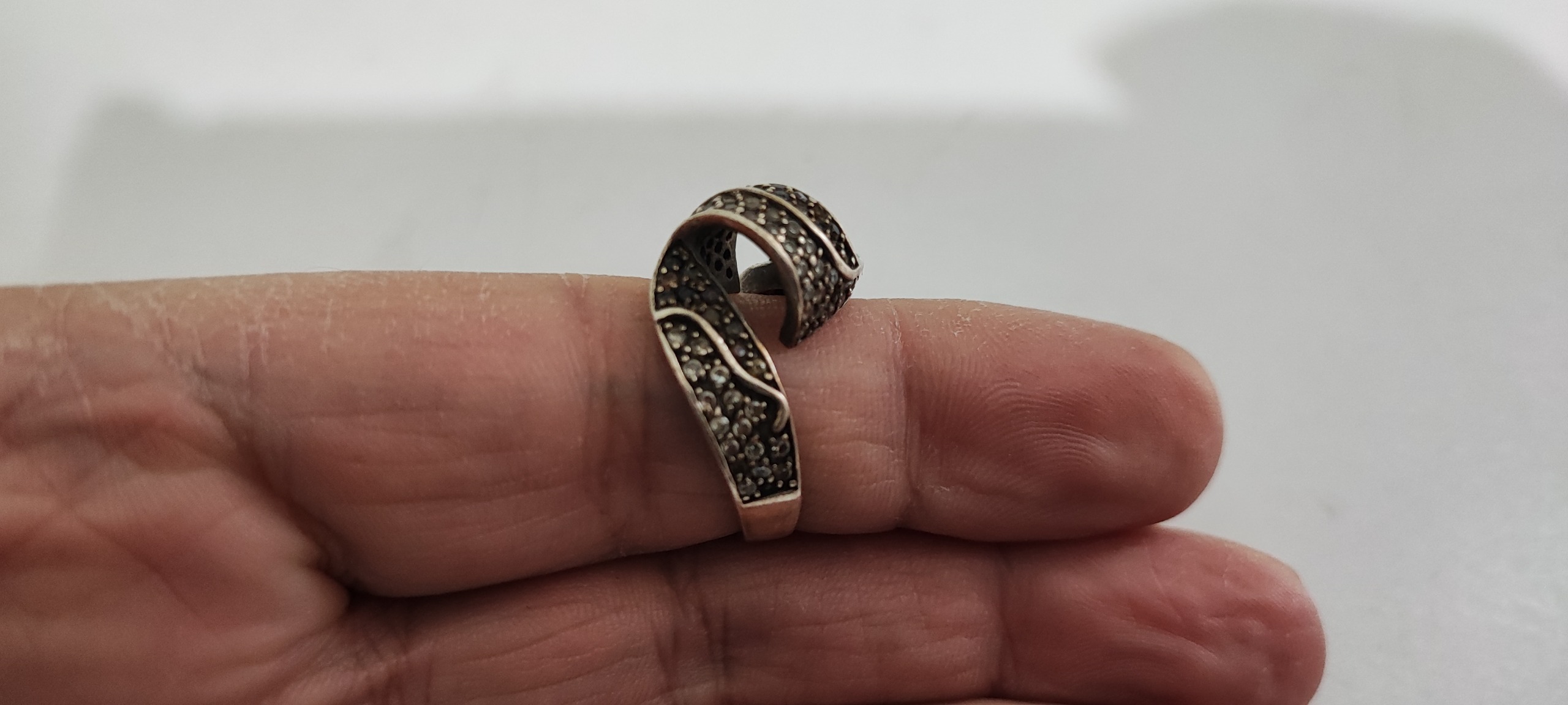 سایز 61، وزن 8/4 گرم، چند تا از نگینهای ریز اتمی رو ناقص داره، زیبا و شیک