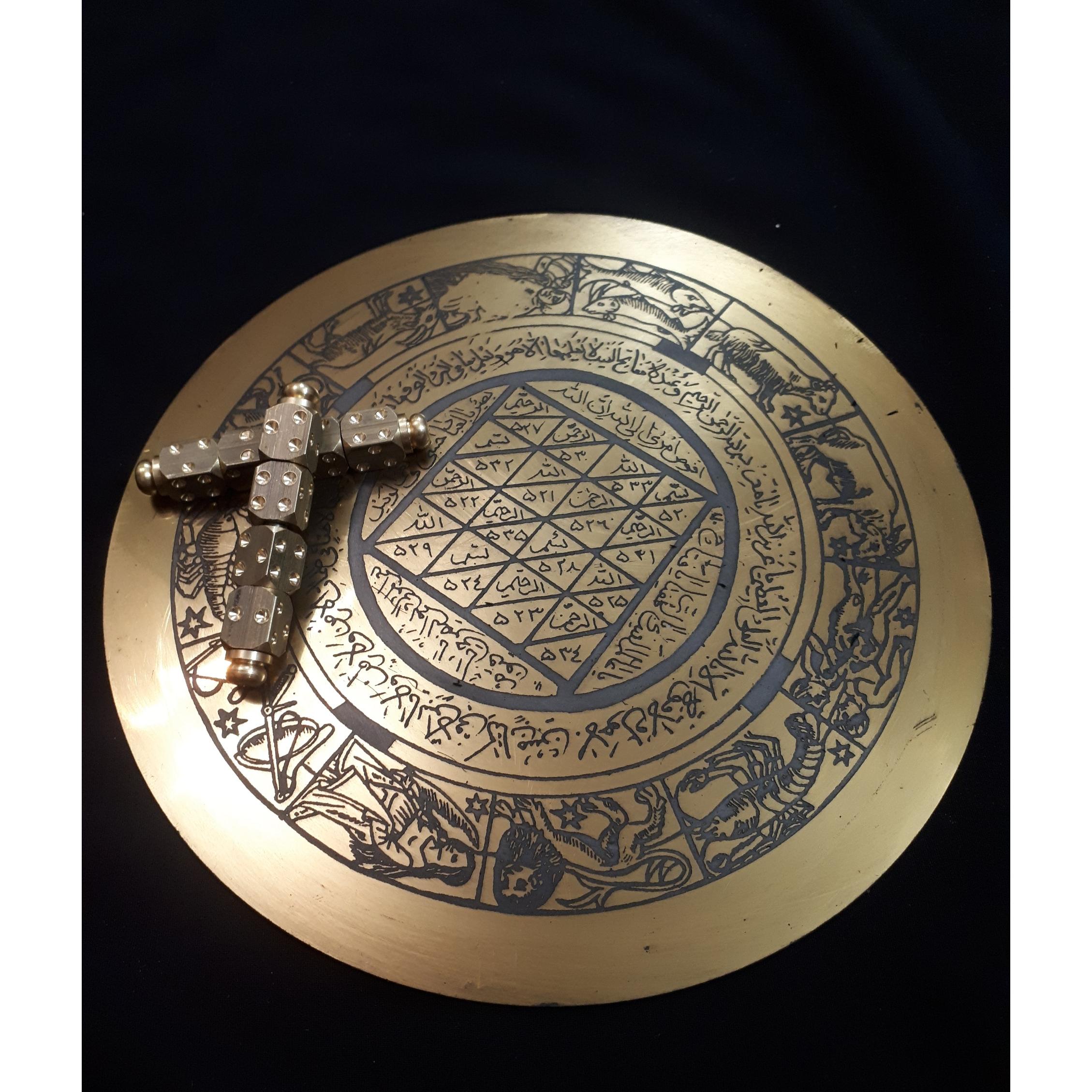 صفحه رمل برنجی 20 سانتی با یک جفت تاس یا قرعه برنجی
