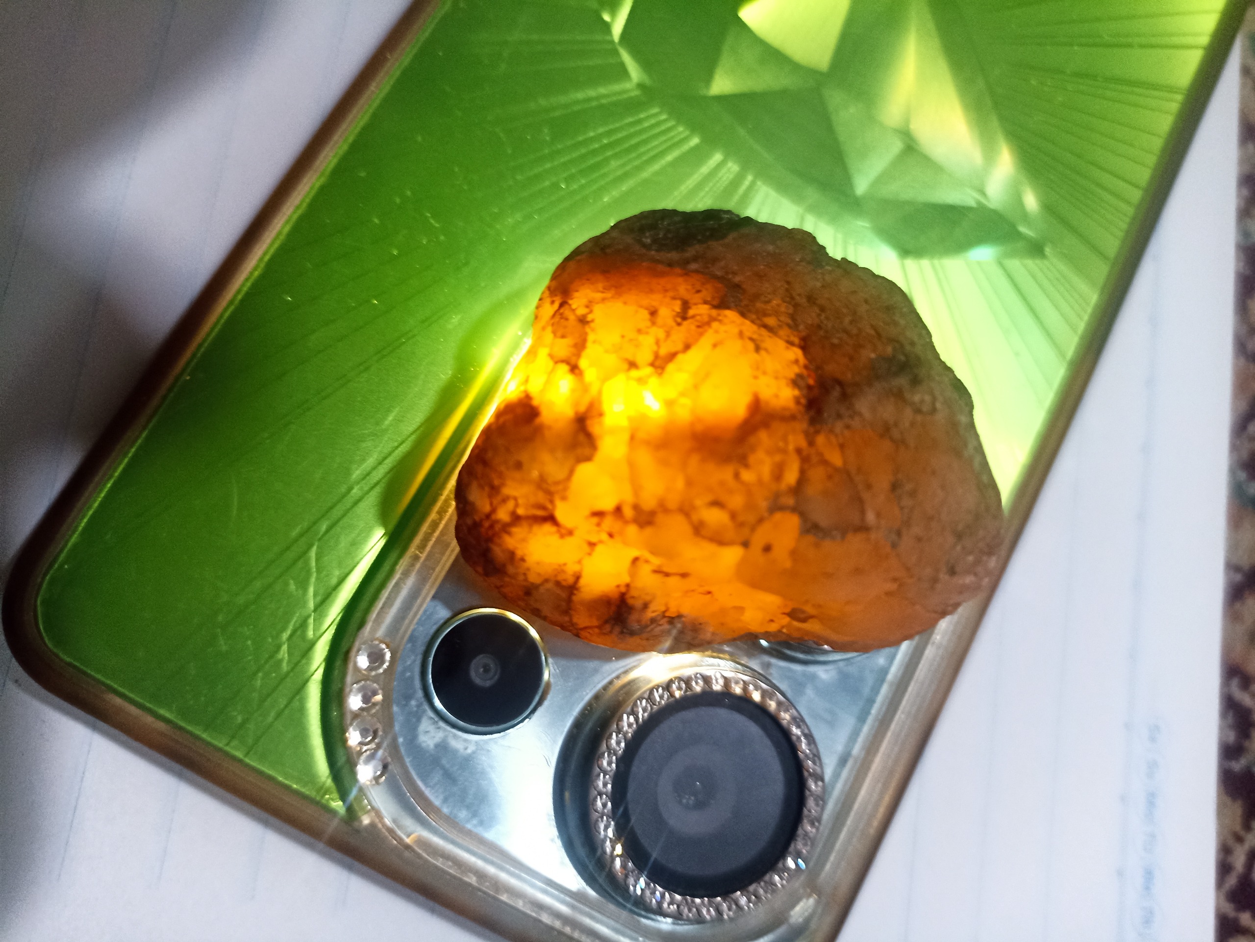 سنگ نیمه شفاف رنگ پرتقالی ولی سفید رنگ در واقعیت