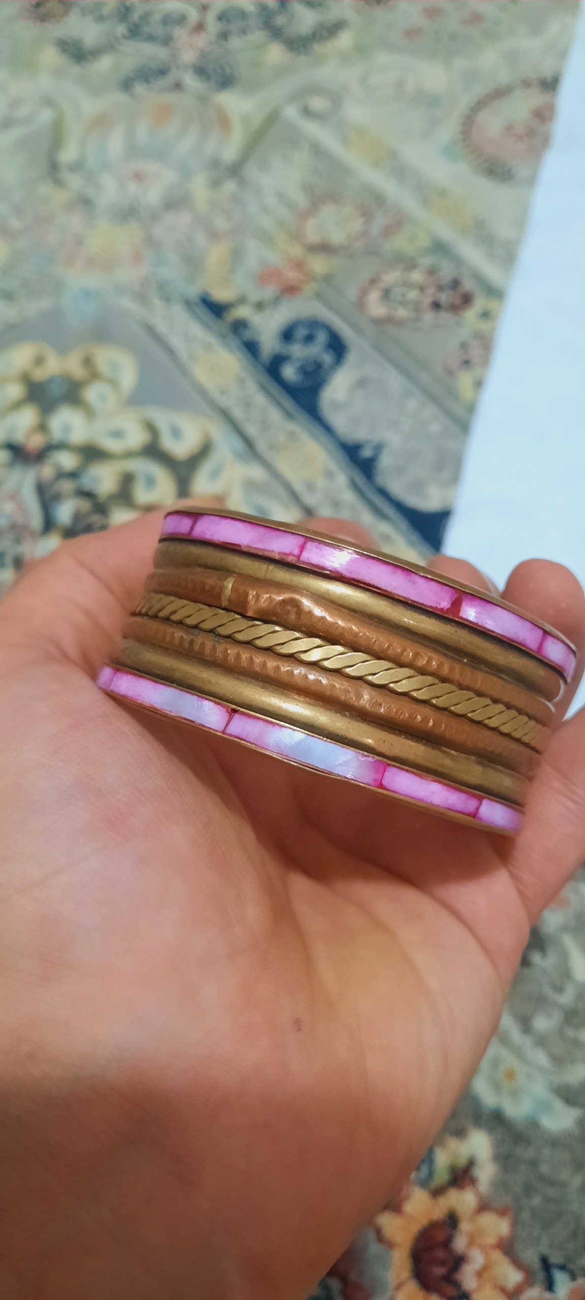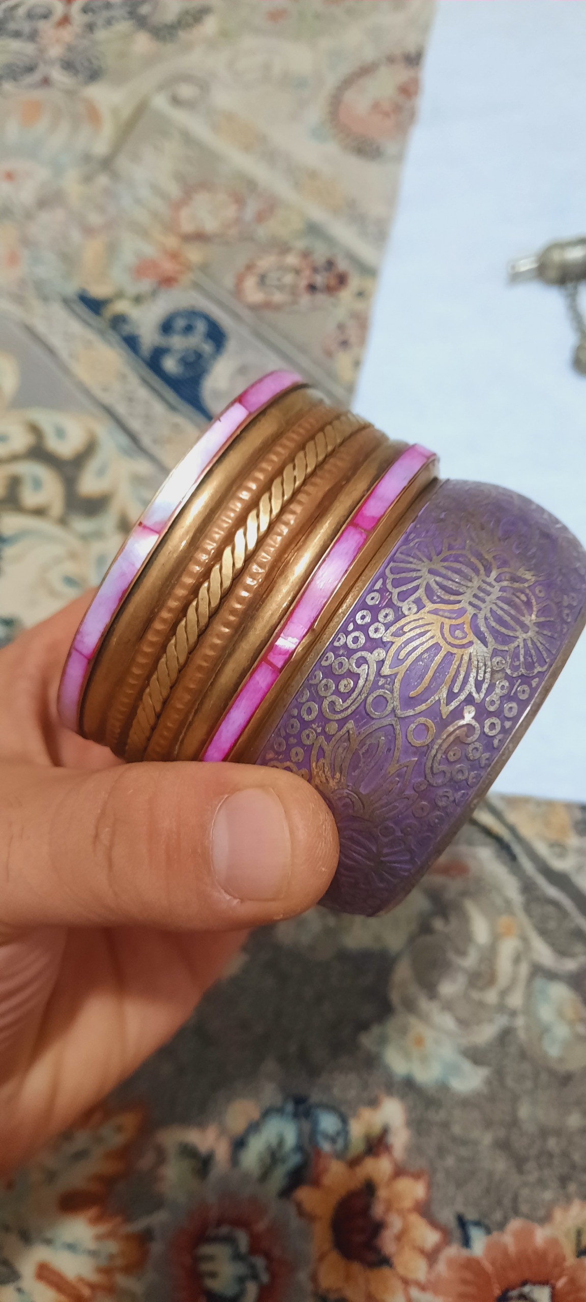 دو عدد دستبند مسی و برنجی نقره کوب تما کار دست بسیار نادر و خاص و کمیاب فوق کلکسیونی مربوط به هنر اصفهان و 50سال قبل هست. و تماما شبکه کهری و ضرب کاری نقره. کوب شده عیار 95