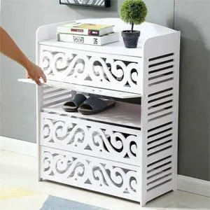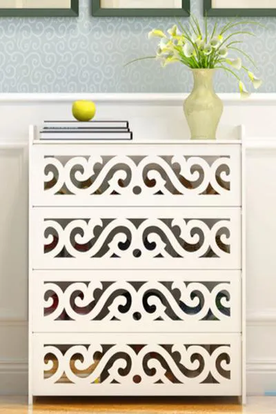 شلف جاکفشی چهار طبقه درب دار ، محصولی جدید با طراحی ظاهری زیبا و در عین حال متفاوت می باشد . این شلف تولید شده از جنس پی وی سی مرغوب و باکیفیت بوده که در برابر آب و رطوبت کاملاً مقاوم است ، بنابراین به سادگی می توانید در صورت نیاز آن را تمیز و یا حتی شست و شو نمایید . جاکفشی طبقاتی از نوع ایستاده می باشد که هر یک از طبقات آن دارای یک درب آسان باز شو اختصاصی است ، بنابراین می توانید کفش ها را به صورت تفکیک شده و منظم با امکان دسترسی سریع و آسان درون آن قرار دهید . فضای روی جاکفشی نیز امکان جای دادن وسایل مختلف نظیر دکوری و تزیینی را برای کاربر خود فراهم نموده . برش های روی دیواره و درب ها جلوه ای چشم نواز را برای کالا به وجود آورده . علاوه بر کفش از این کالا می توانید برای نگهداری لوازم و وسایل مختلف استفاده کنید . قابلیت ست شدن با تم های گوناگون با توجه به رنگ سفید کالا ، کمترین محدودیت در استفاده از جاکفشی را برای کاربران مختلف پدید آورده است.