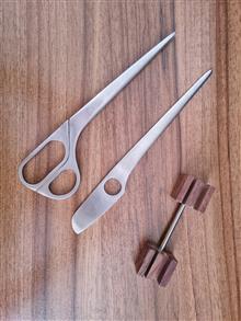 قیچی کاملا نو و آکبند به همراه پایه و جعبه