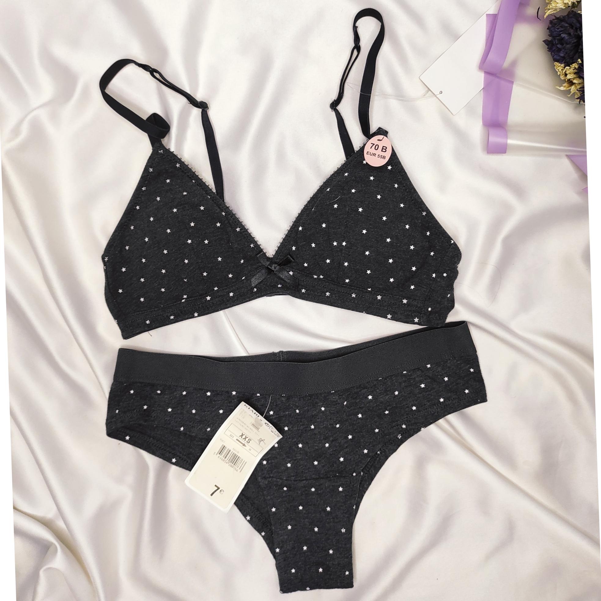 سایز کوچیکا مناسب سایز55ست مشکی خال خالی جنس کاملا نخی و راحت کاپ ساده بدون جک و فنر