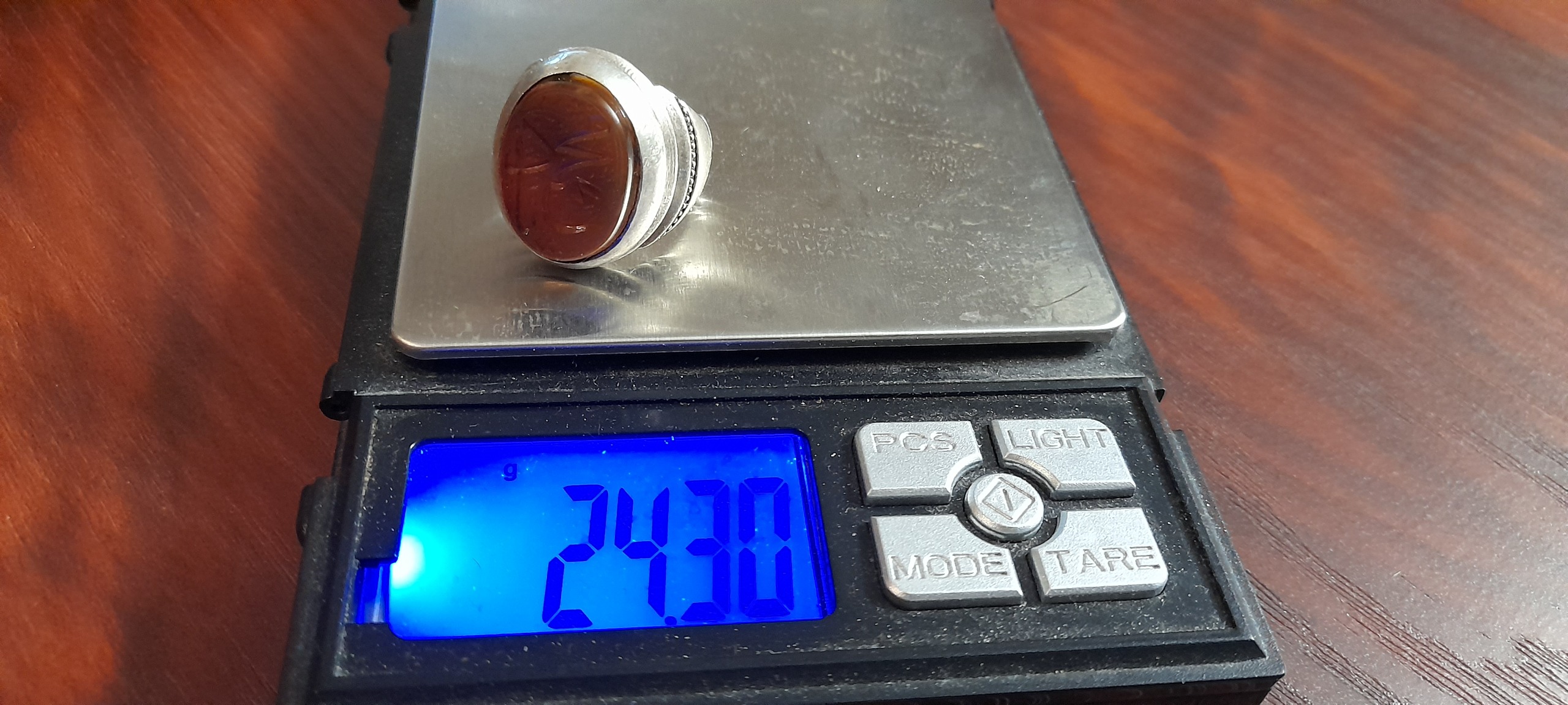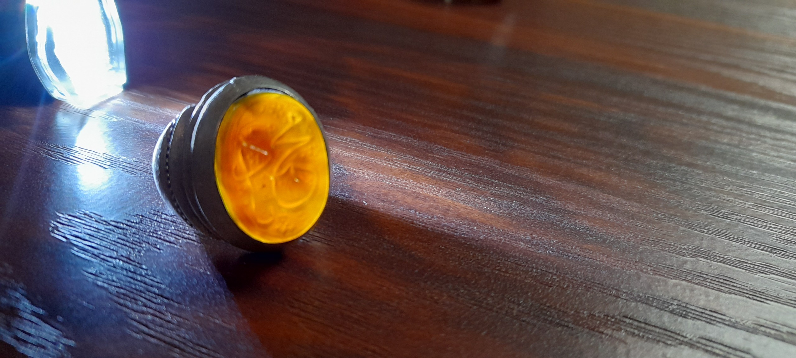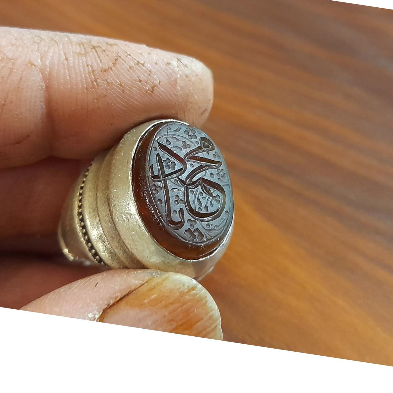 انگشتر کلکسیونی عقیق خطی دستساز مهردار عیاربالا