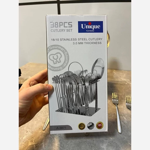 سرویس قاشق چنگال 38 پارچه استند دار یونیک آلمانی استیل آهنربا نگیر esamesam6 عدد قاشق غذاخوریesam 6 عدد چنگال غذاخوری esam6 عدد چنگال میوه خوری esam6 عدد قاشق مربا خوریesam6 عدد کارد میوه خوری esam6 عدد قاشق شربت خوری esam1 عدد ملاقه ماست esam 1 عدد کفگیر بزرگ esam1 عدد استند فلزی استیل esamesamقابل استفاده در محیطهای پذیرایی لوکس و مدرن گزینه ای مناسب برای چیدمان ظروف جهیزیه عروسesamesamدارای طراحی زیبا و مناسب دارای قیمت مناسبesamesamنکته فقط کارد میوه خوری استیل آهنربا بگیر هست esam