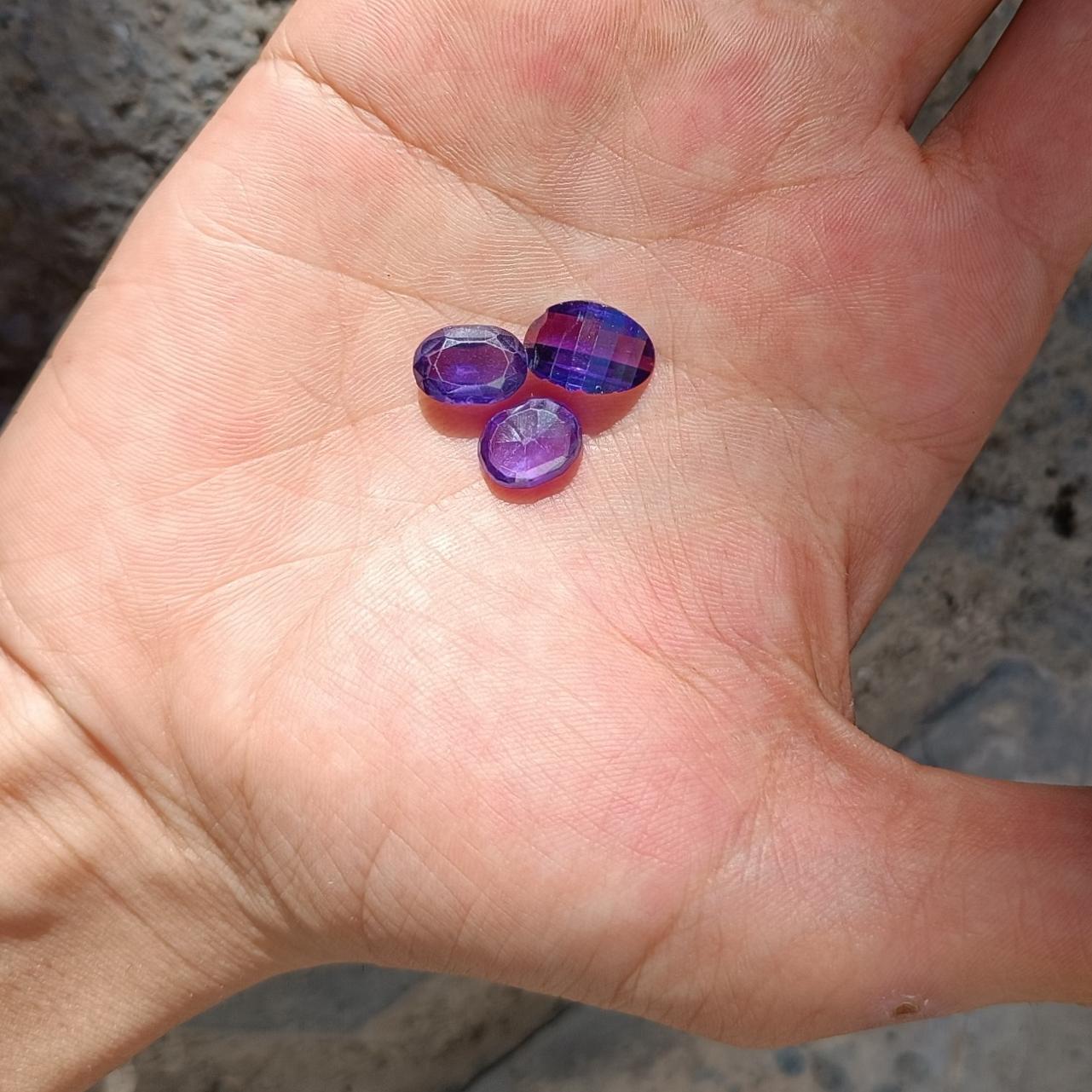 سه تا نگین بنفش که به عنوان آماتیست قبلاً گرفته بودم و صادقانه بخوام بگم نمیدونم چقدر میارزه و اینکه معدنیه یا آزمایشگاهی