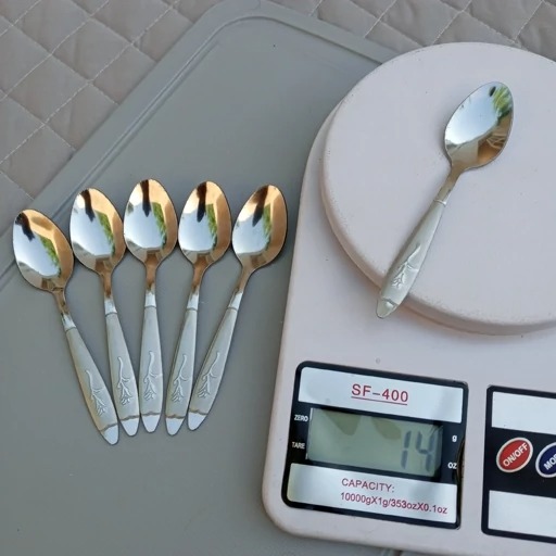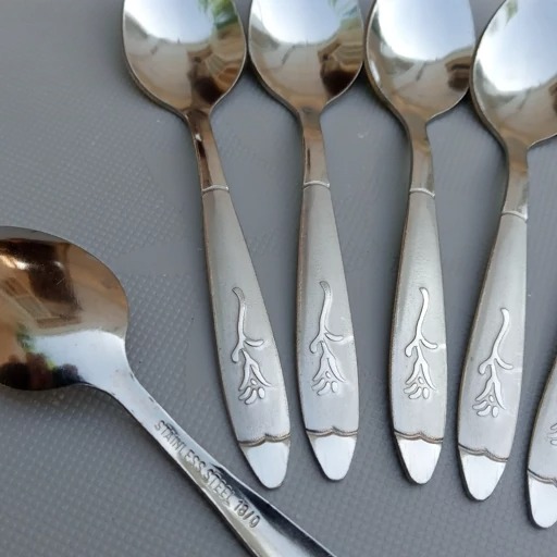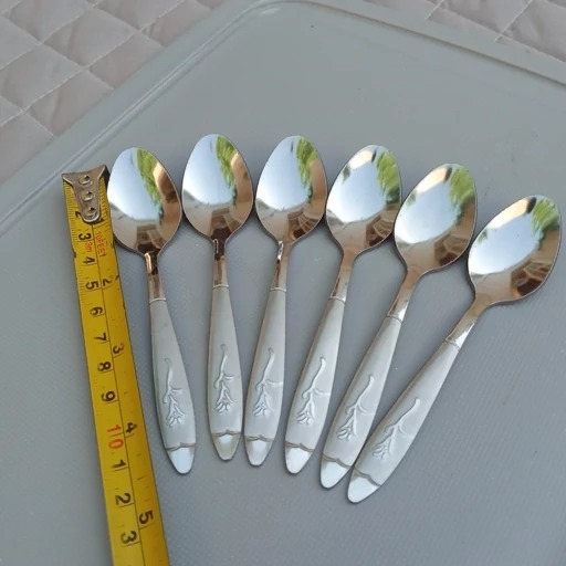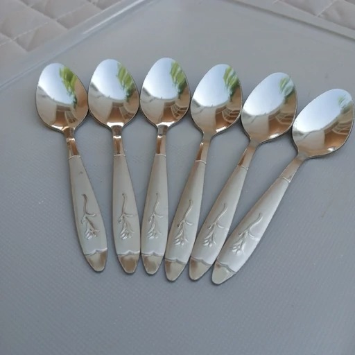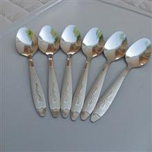 قاشق چایی خوری طرح گل میخک بسته 6 عددی جنس فولاد زد زنگ عیار 18 ضخامت 2 میل