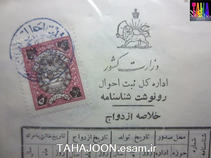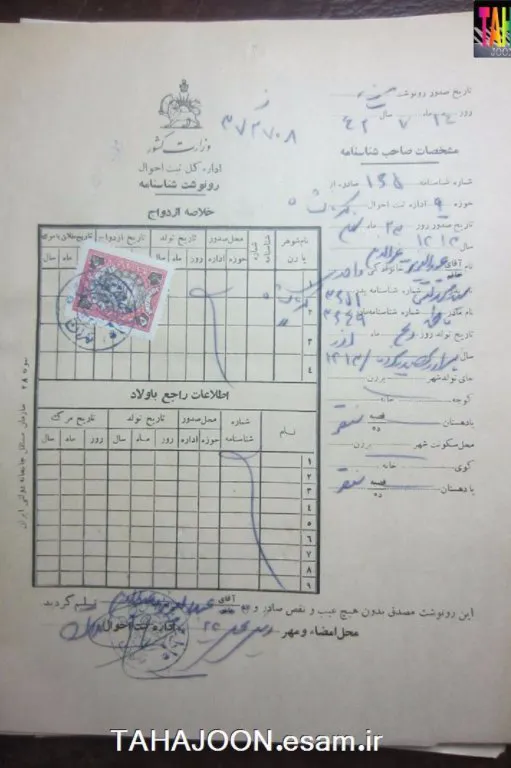 (با تمبر کمیاب 5 ریالی ثبت احوال)