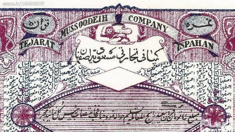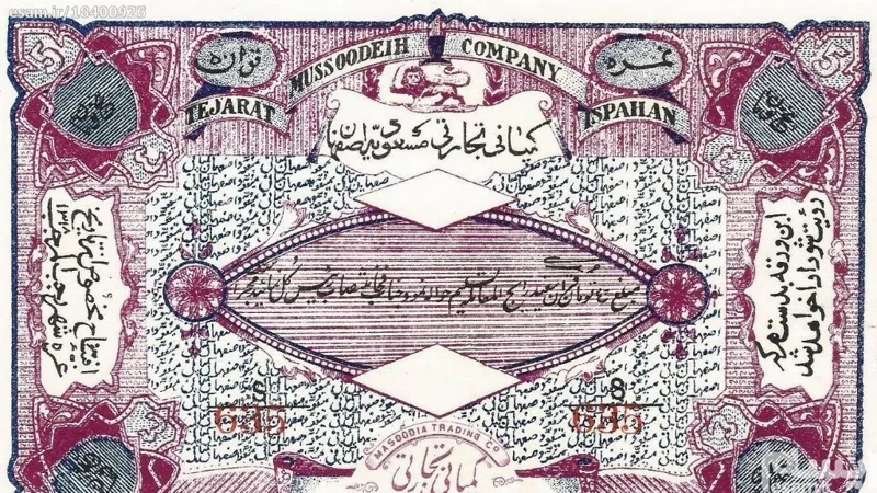 سهام قاجاری 5 تومانی کمپانی مسعودیه اصفهان