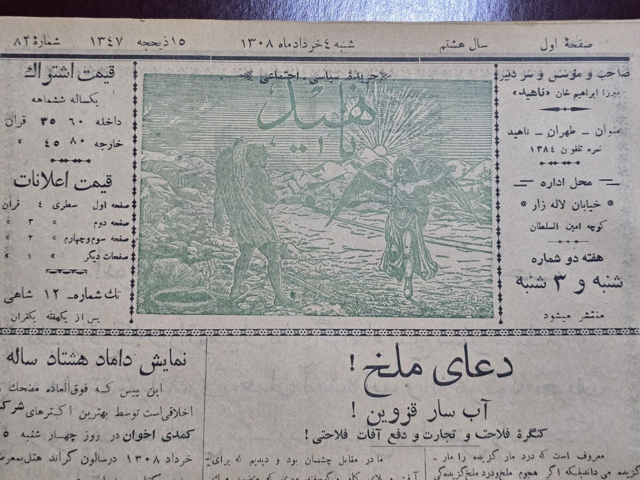 روزنامه بسیار ارزشمند و کمیاب ناهید شماره 82 سال هشتم با سربرگ رنگی سبز
