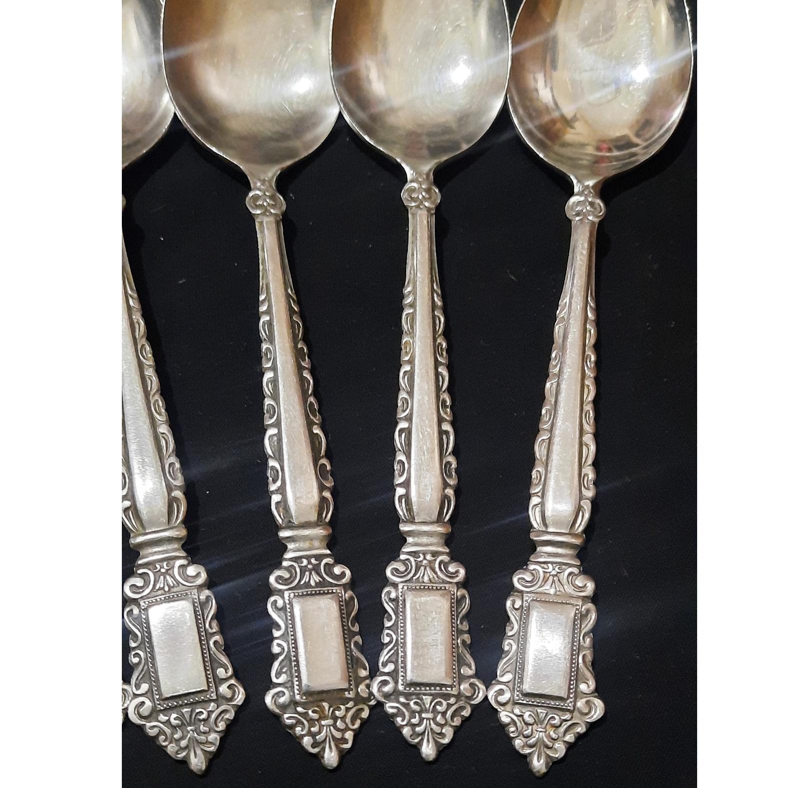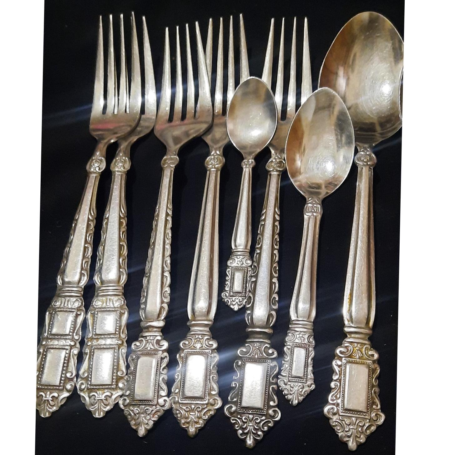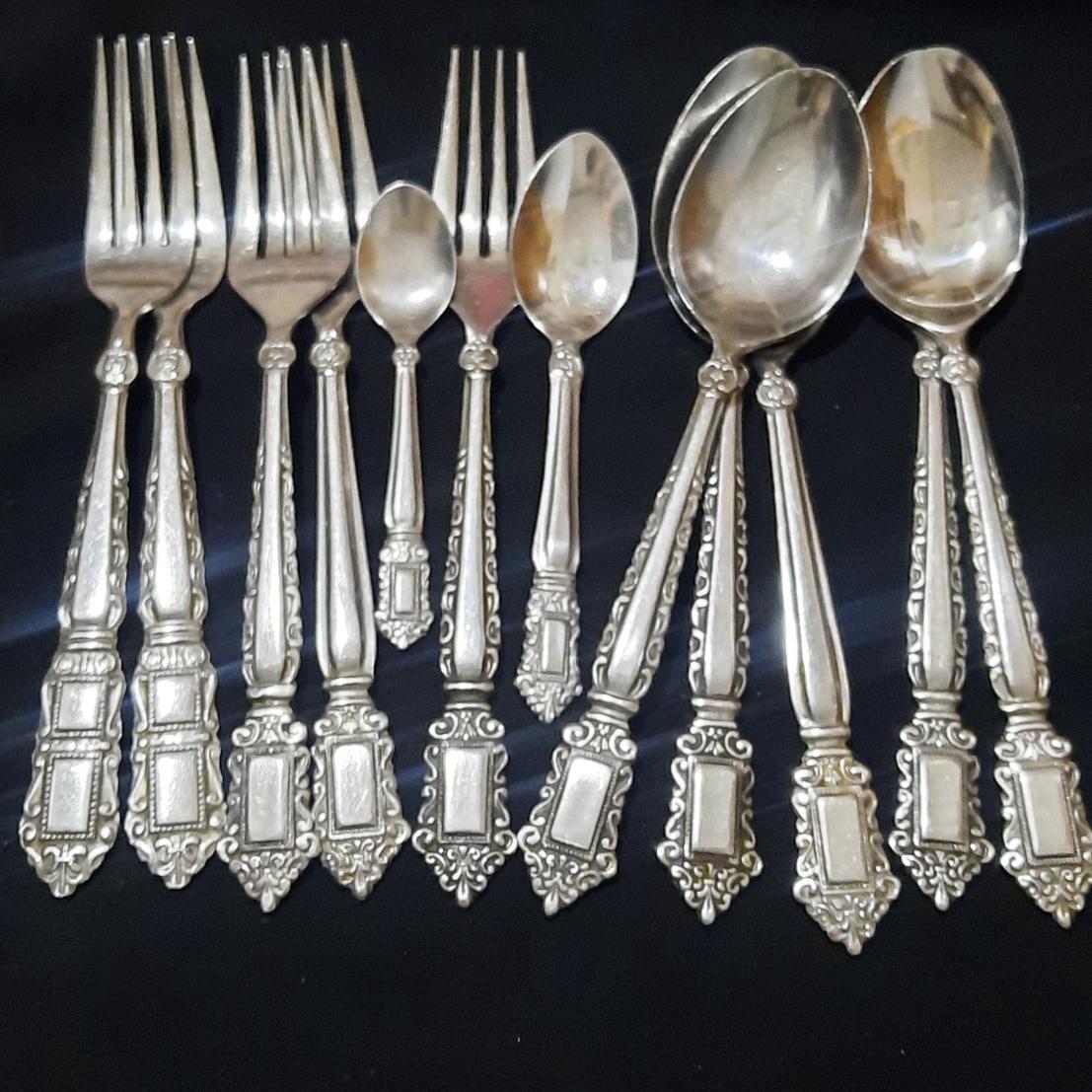5 قاشق و چنگال طرح و اندازه و مارک مختلف یک قاشق مربا و یک قاشق چایخوری دست دوم خط و خش ممکن است دیده شودچند تاشون پشتشون سیاه است جهت باغ و جلو دستی