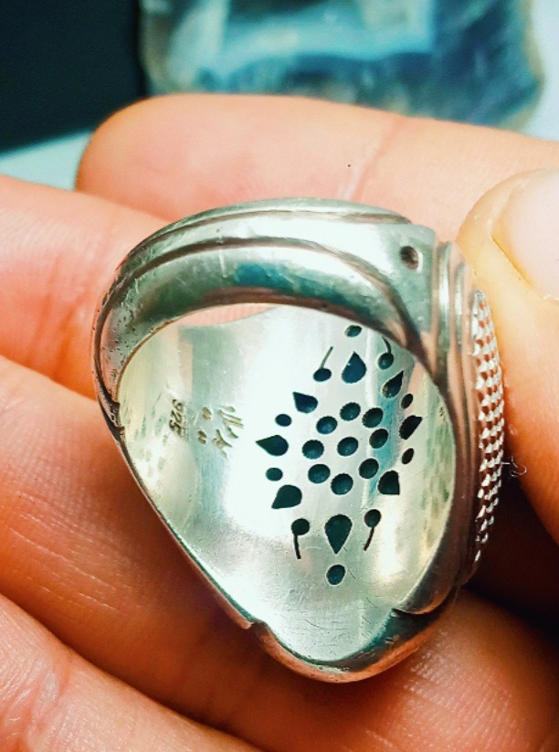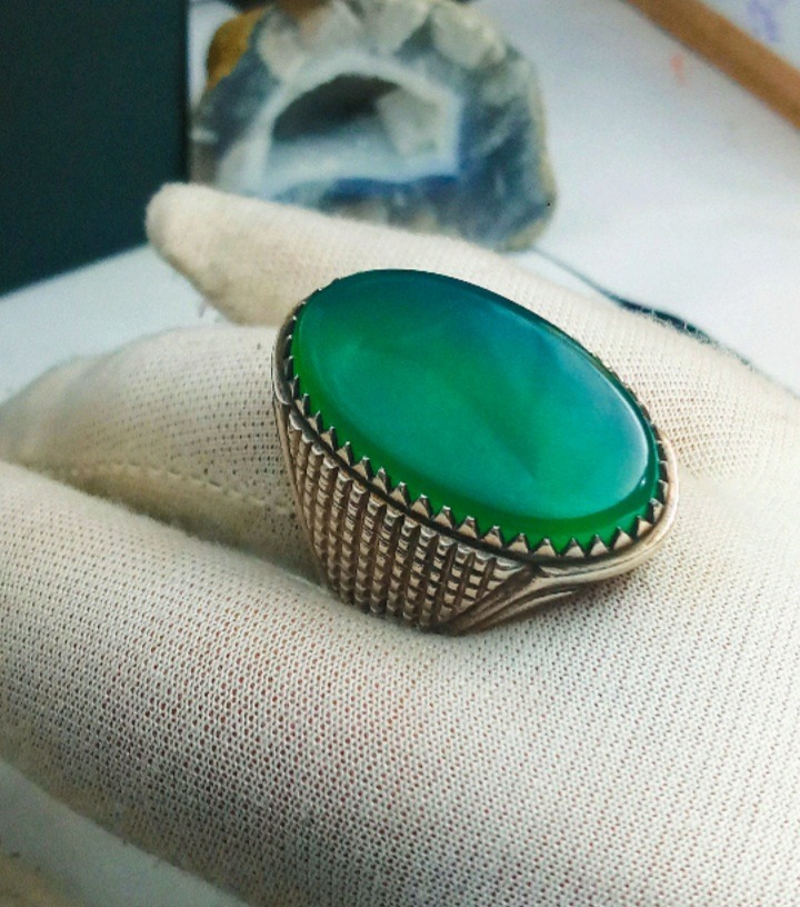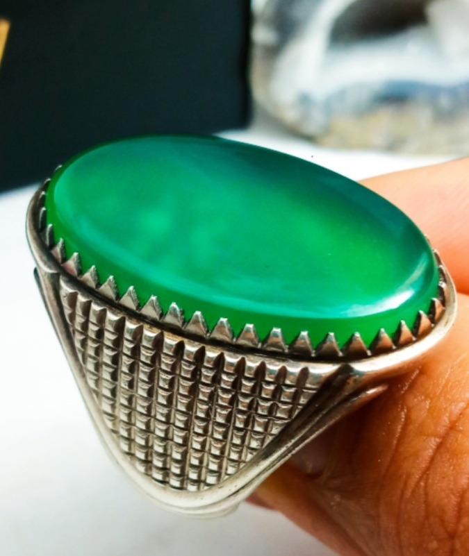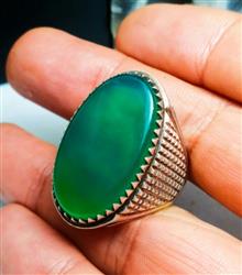 انگشتر شیک و زیبای دوقاب شیرازی تمام دستساز با اسم سازنده و نگین معدنی و طبیعی عقیق سبز