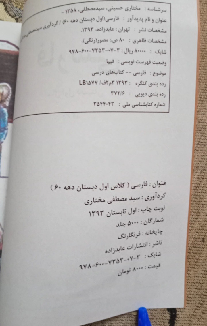 کتاب فارسی اول دبستان 1365، چاپ دوم