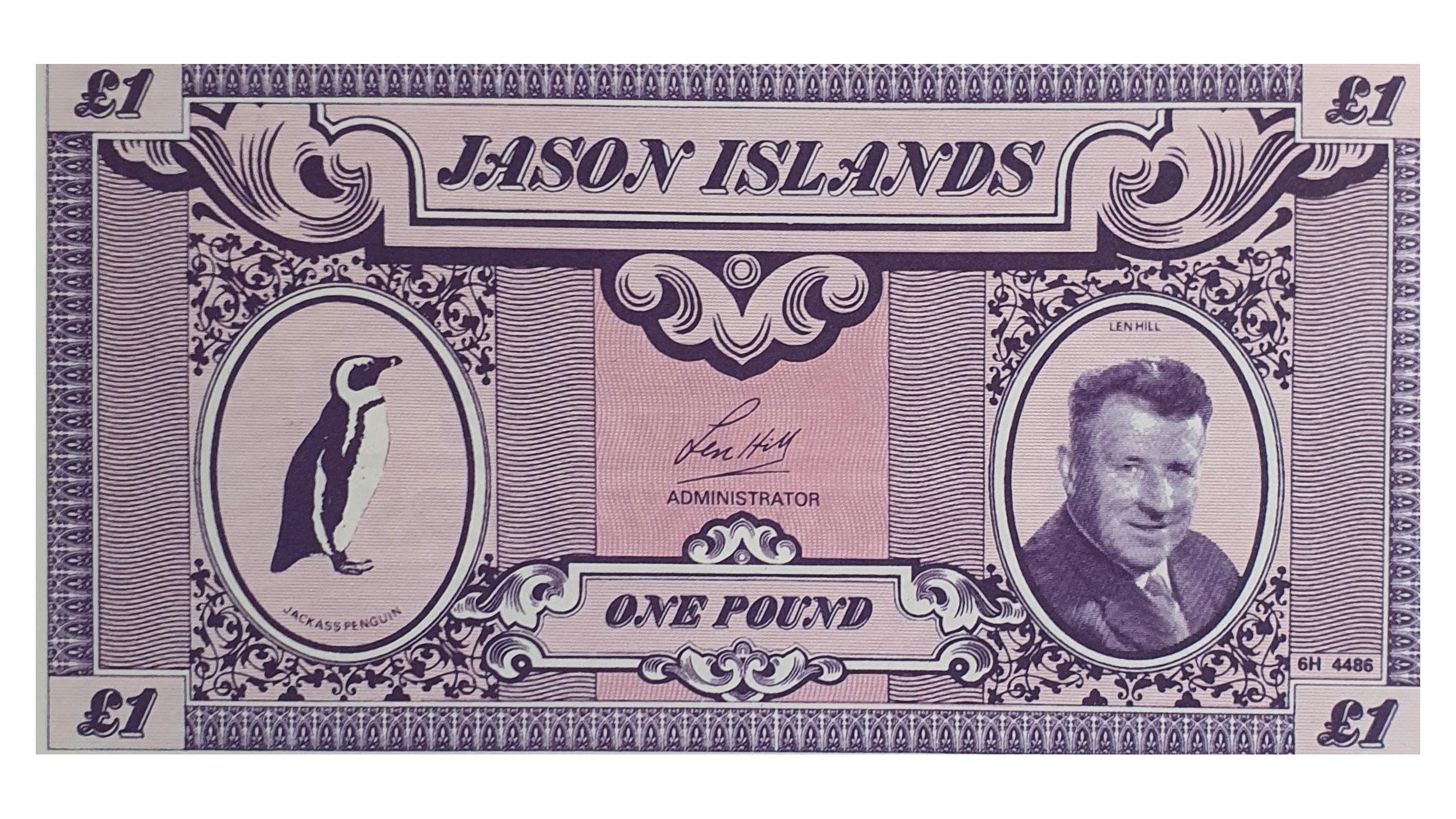 این اسکناس مربوط به جزایر جیسون (Jason Islands) است ؛ مجموعه ای از جزایر کوچک در مجمعالجزایر فالکلند (قلمرو فرادریایی بریتانیا) در اقیانوس اطلس جنوبی با تصویر پنگوئن بومی منطقه