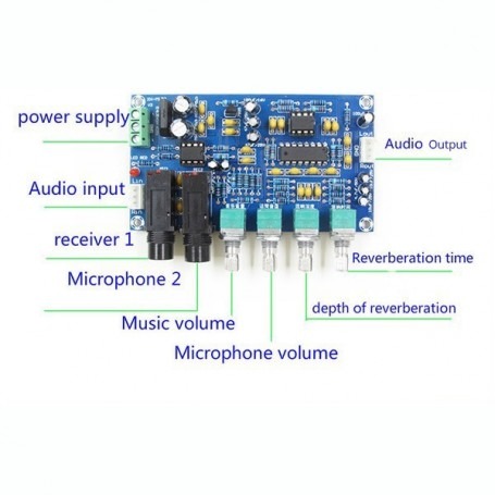برد اکو و پری آمپلی فایر دارای 4 ولوم و دو ورودی میکروفون با ولتاژ کاری در محدوده 6 تا 20 ولت AC دوبل