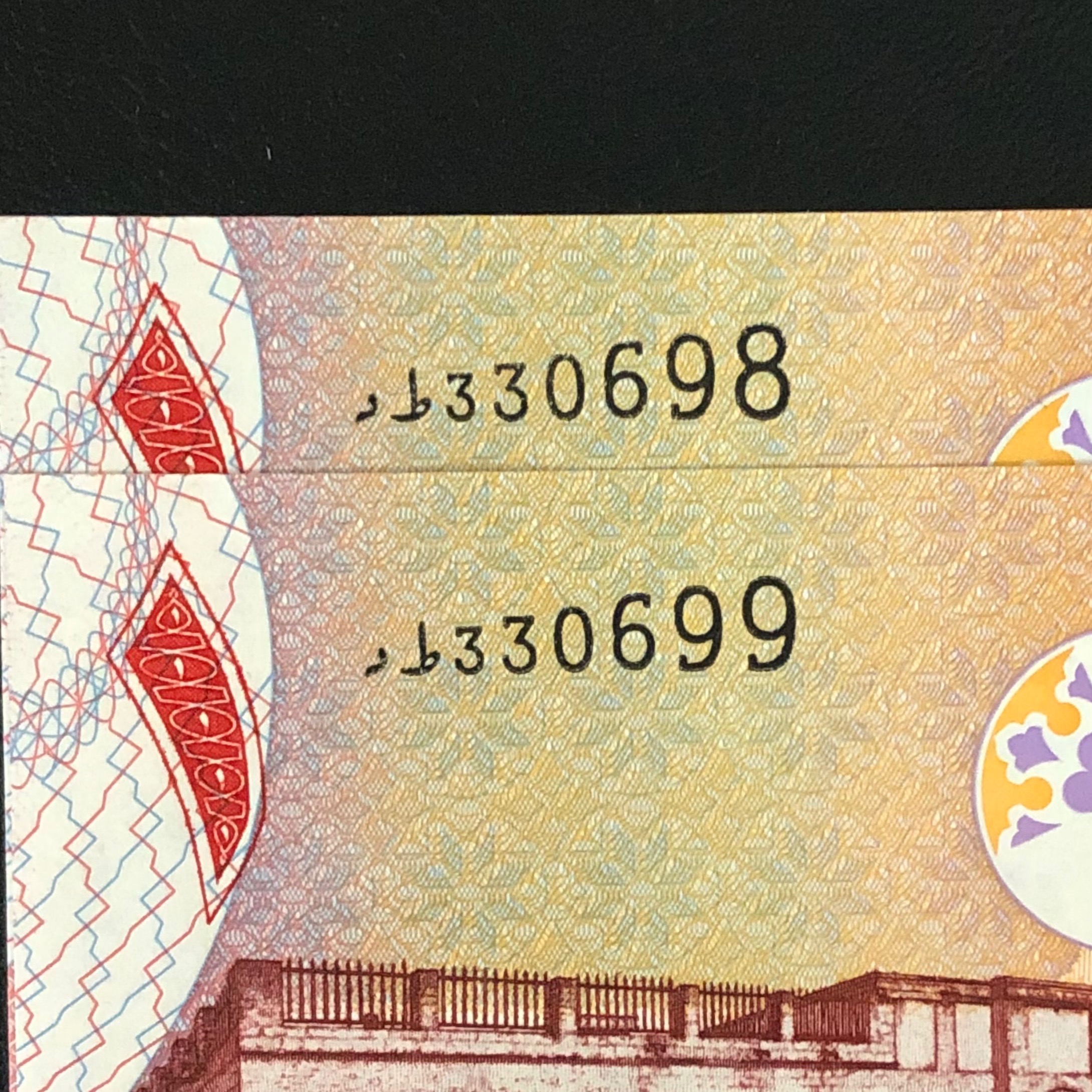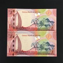 اسکناس جفت بانکی 1 دینار بحرین شماره سریال زیبا