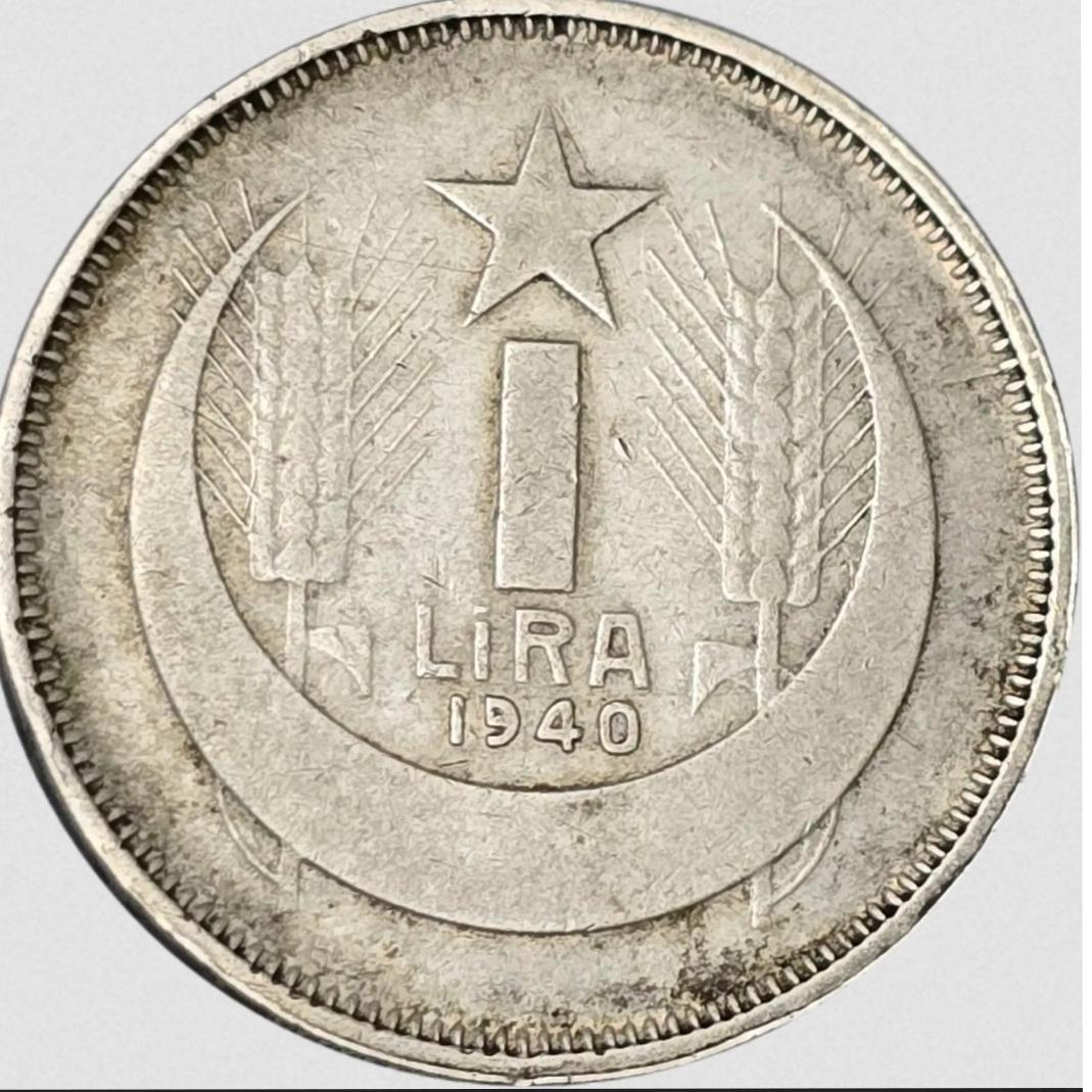 سکه ترکیه نقره 1 لیر ترکیه 1940 میلادی نقره نایاب