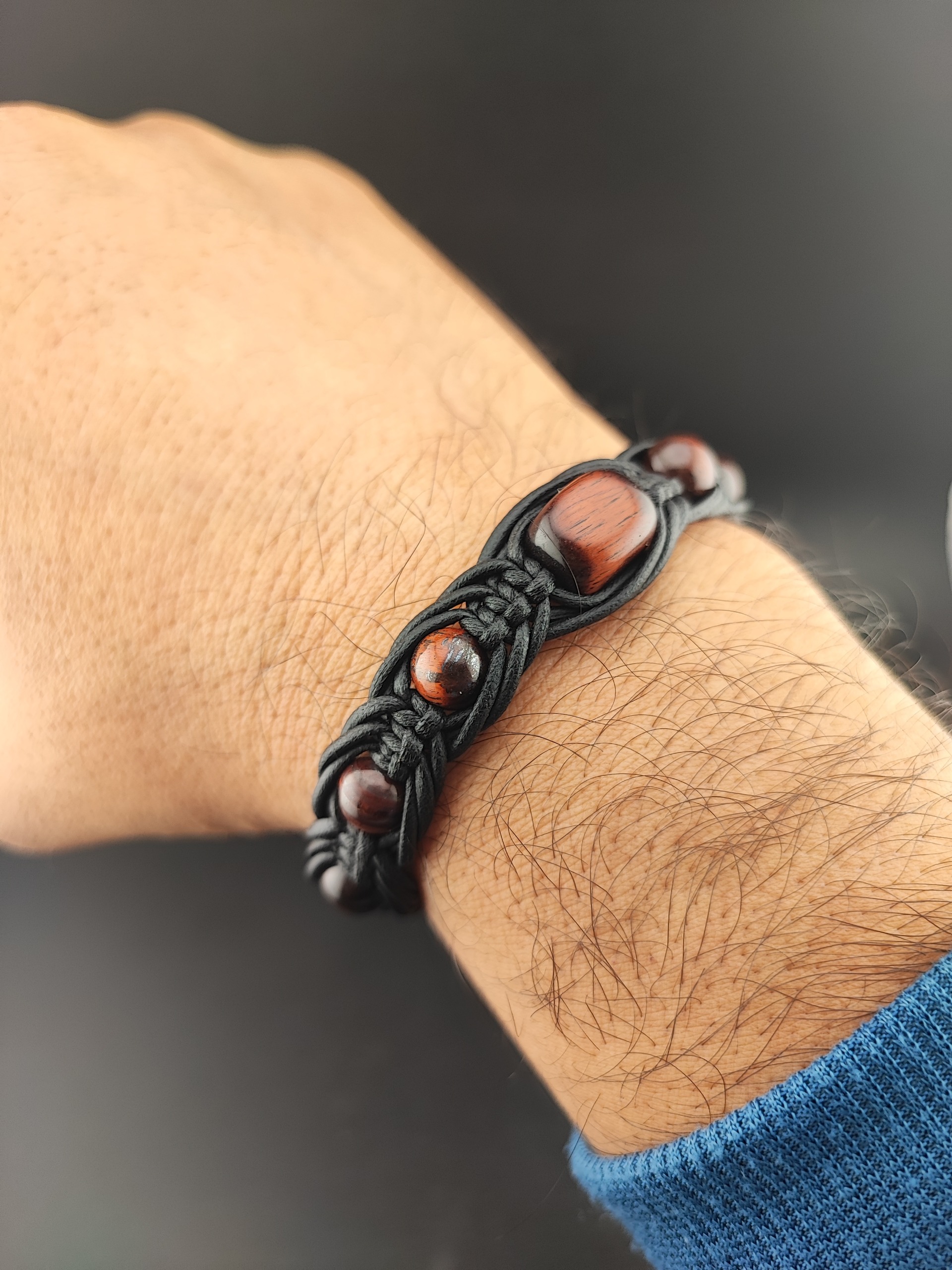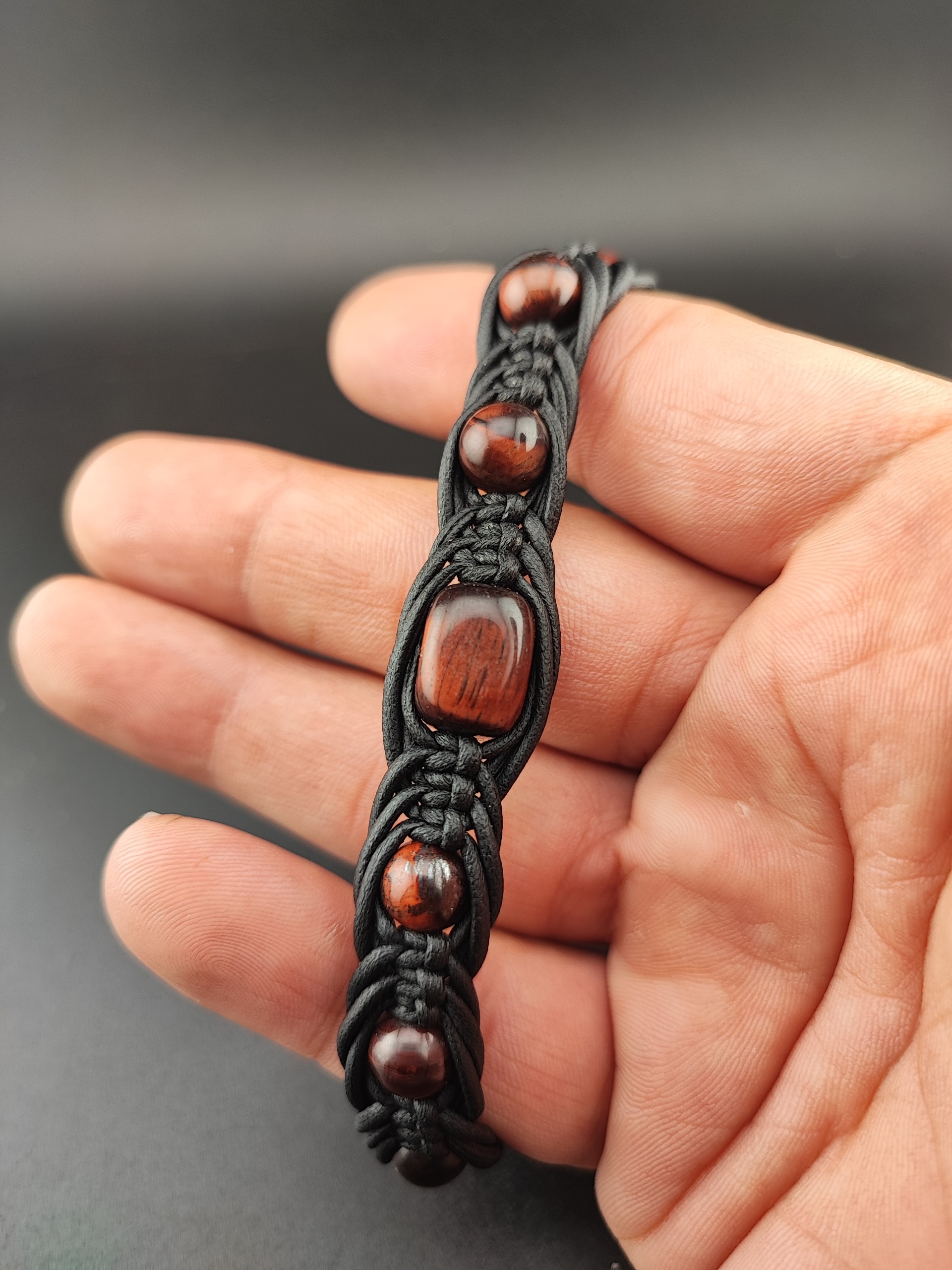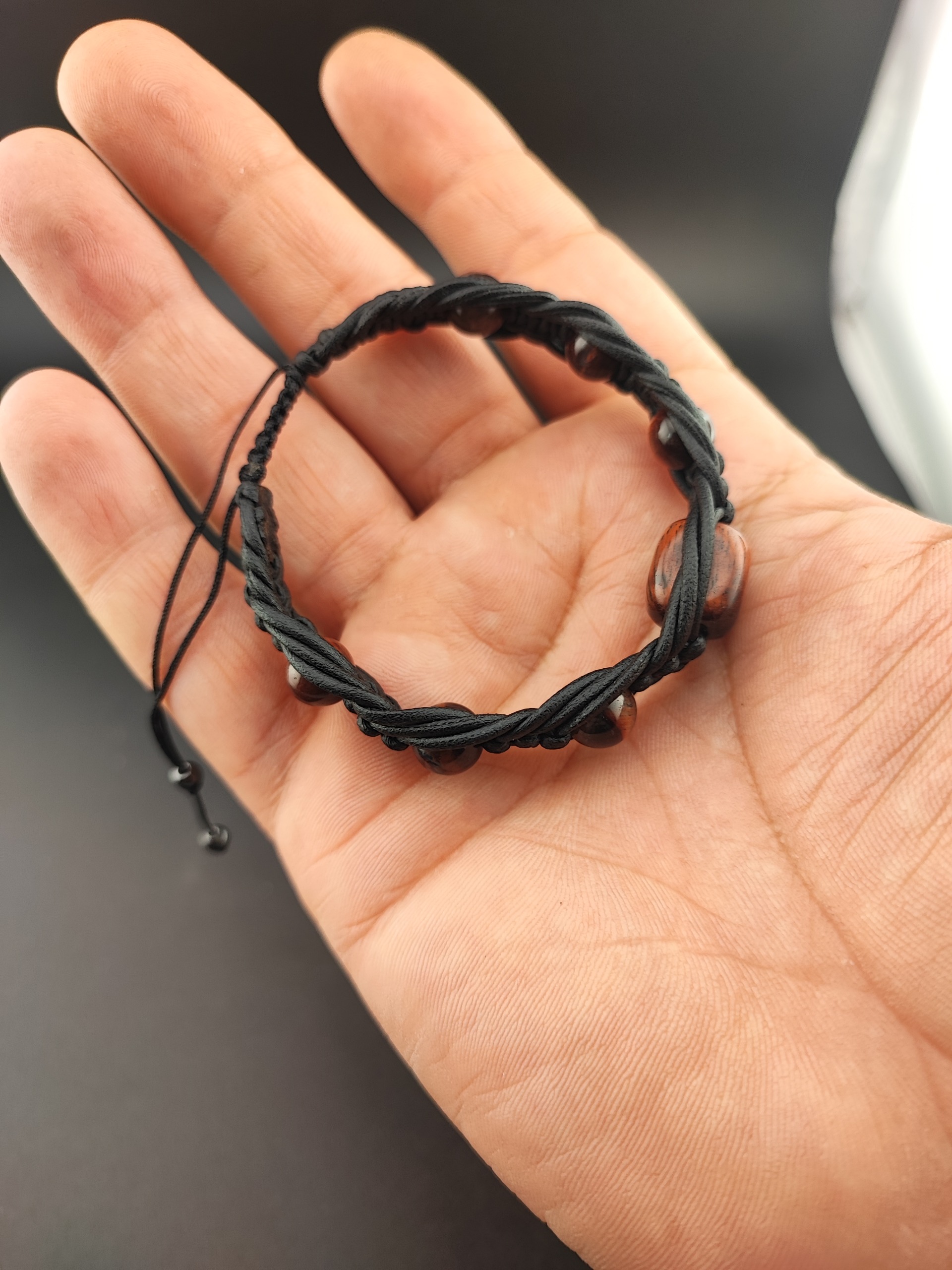 دستبند دستساز سنگ طبیعی چشم شاهین چرم بافت
