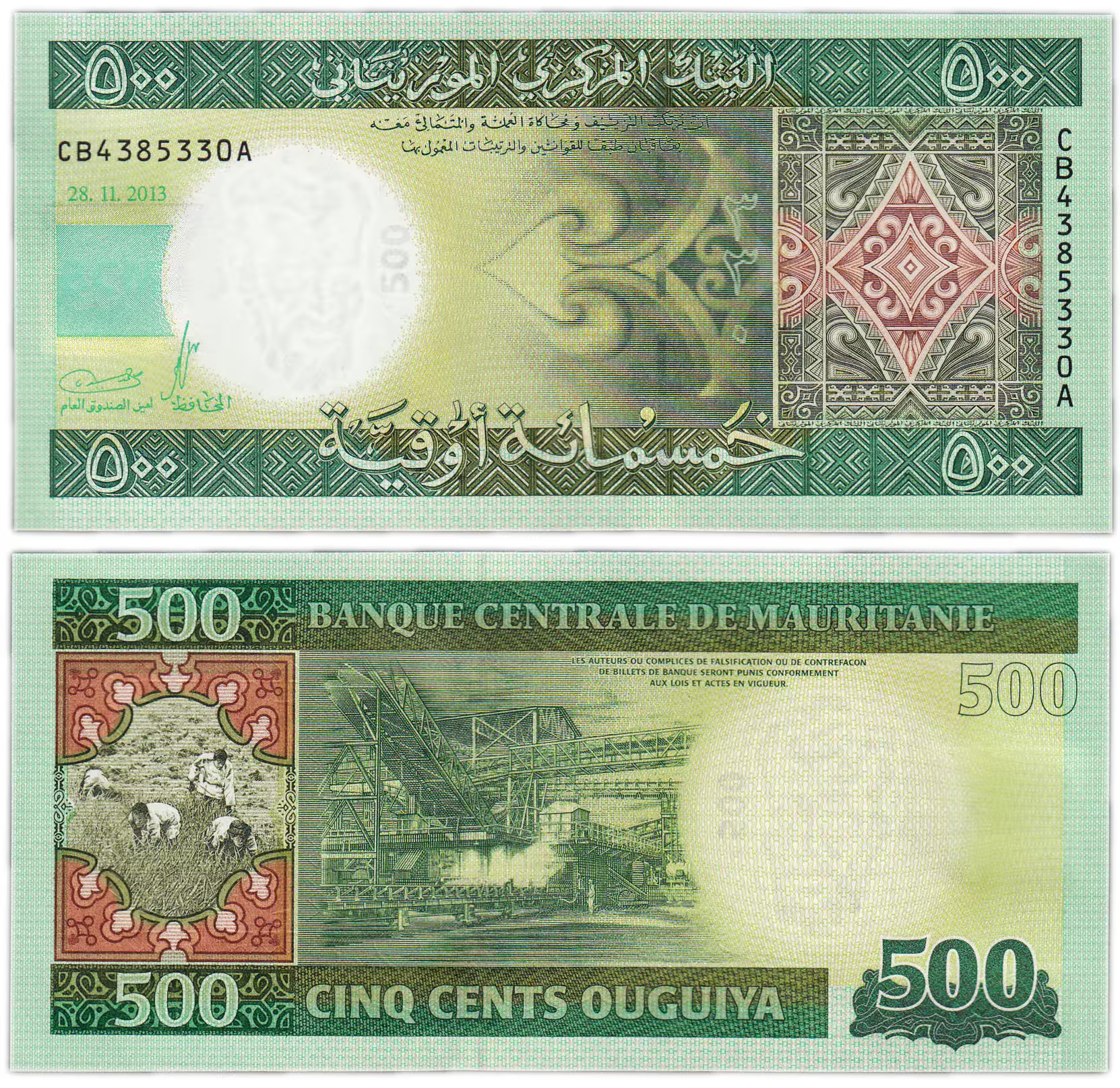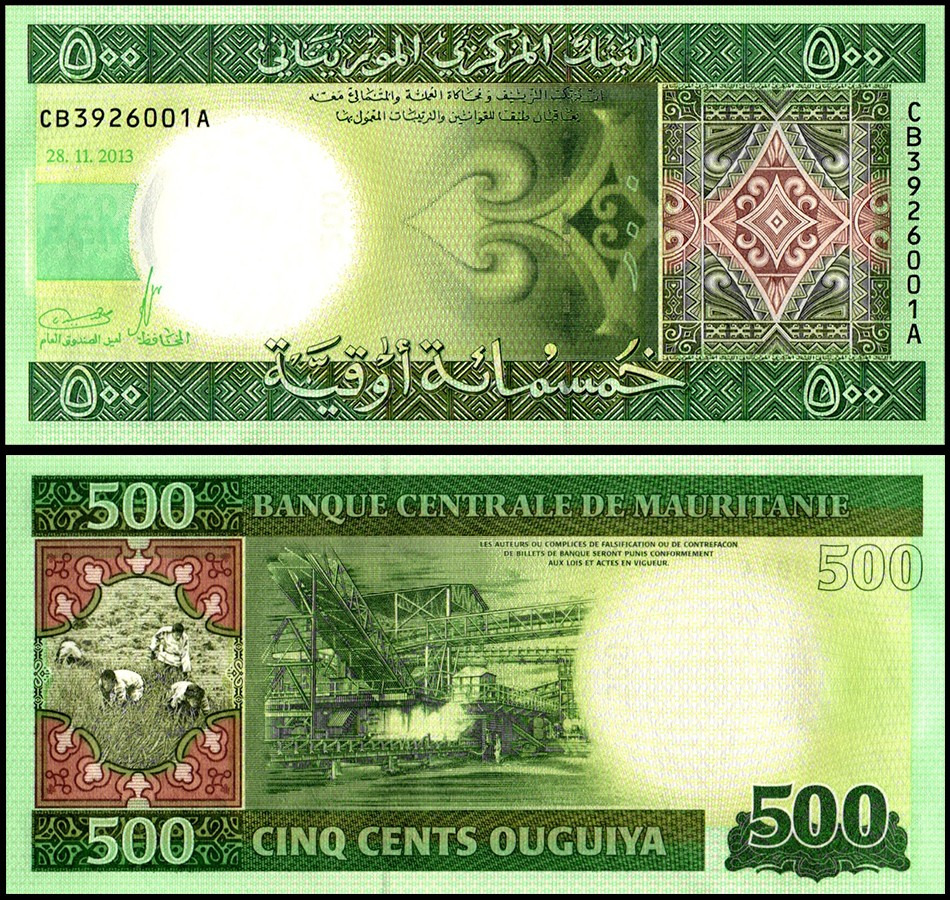 یک برگ اسکناس 500 اوقیه موریتانی