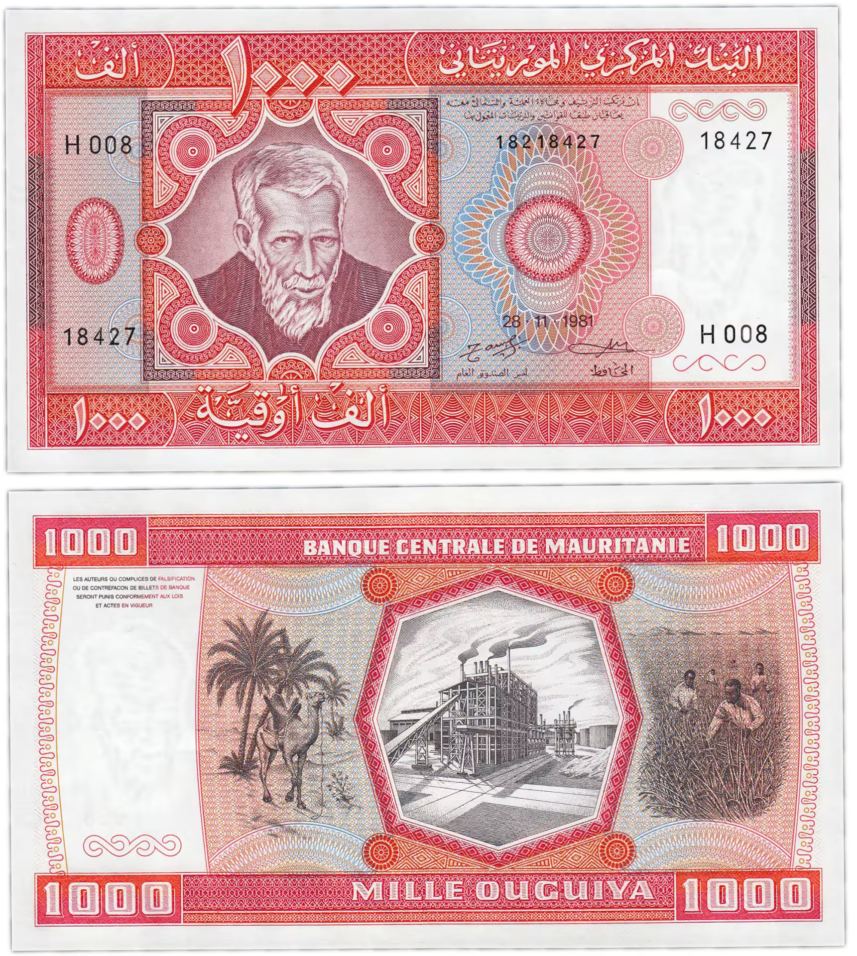 یک برگ اسکناس 1000 اوقیه موریتانی _ کاغذی